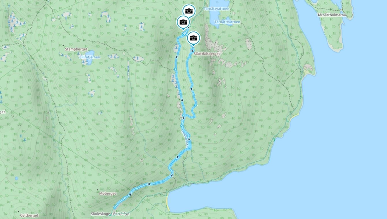 Der Weg ist wie immer in den schwedischen Nationalparks gut markiert und nicht zu verfehlen. Wir liefen zunächst zur Schlucht mit dem Namen Slåttdalsskrevan und von dort hoch auf den Berg Slåttdalsberget. Dabei muss man kurz eine kleine Klettereinlage am Berg nehmen. Nichts gefährliches, aber für den ein oder anderen eventuell ein Hindernis. Nicht wegen der Höhe, die ist kein Problem, aber man muss halt etwas klettern. Am Besten vor Ort entscheiden ob man weitergeht oder nicht. |