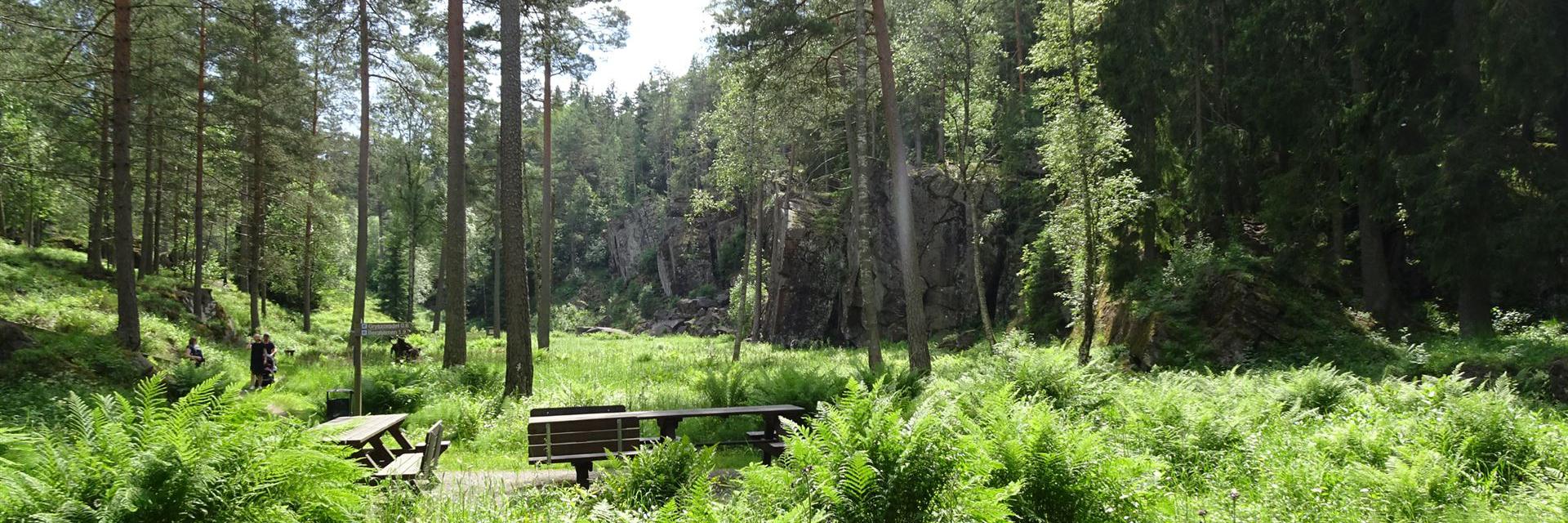 Vom Kulturzentrum Berget geht es zunächst durch einen kleinen Zoo hindurch und auf gut markierten Wegen durch die Landschaft des Naturreservats Sveafallen. |