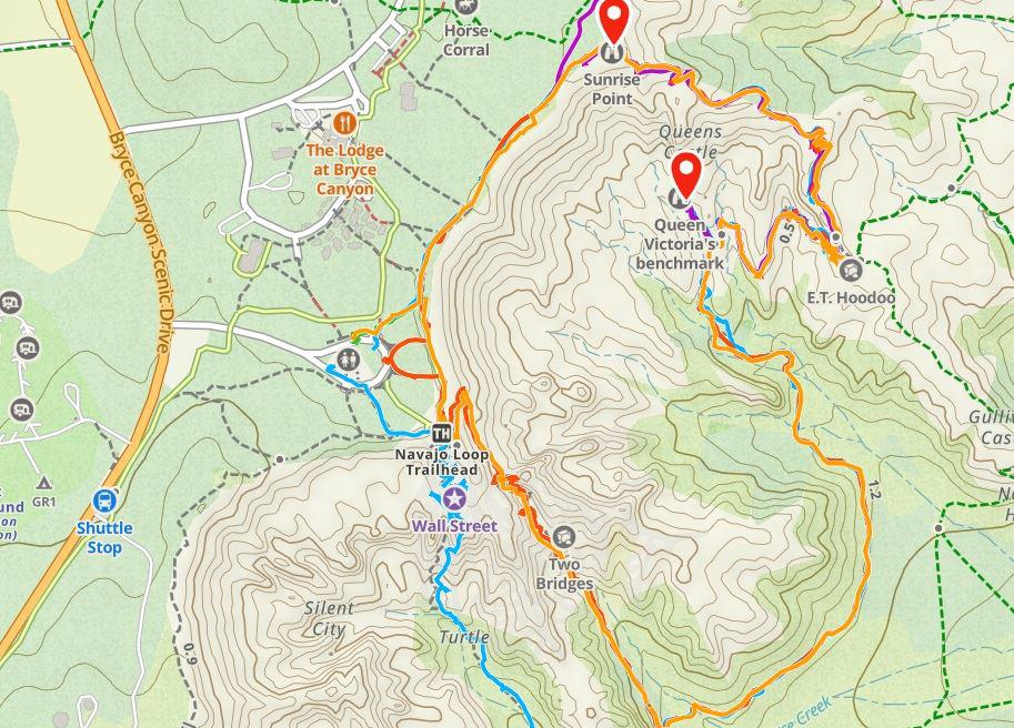 Innerhalb des Nationalparks sind die Wege gut beschrieben und so ganz alleine ist man auch auf diesem Loop selten. Es geht zunächst in den Canyon hinein und muss am Schluß wieder hoch. Das ist die Schwierigkeit. Aber die wunderschöne Umgebung ist einfach einzigartig und man vergisst die Anstrengung. |