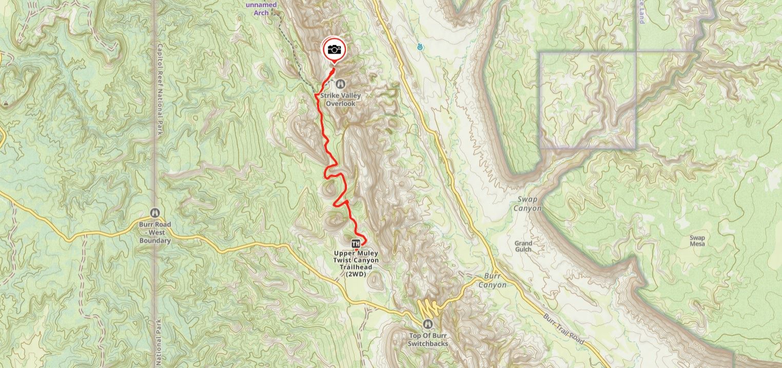 Wenn man am Upper Muley Point Trailhead parkt, ist der Weg selbsterklärend. Einfach der Dirt-Road folgen. Am Ende der Dirt-Road kommt man zu einem Parkplatz. Bis hierher hätte man mit etwas Mut und dem richtigen Auto auch fahren können. Vom Parkplatz aus geht es dann hinauf zum Overlook. Ein Schild weist den Weg. Unterwegs gibt es dann Steinmännchen. Verlaufen ist also eher unwahrscheinlich. |