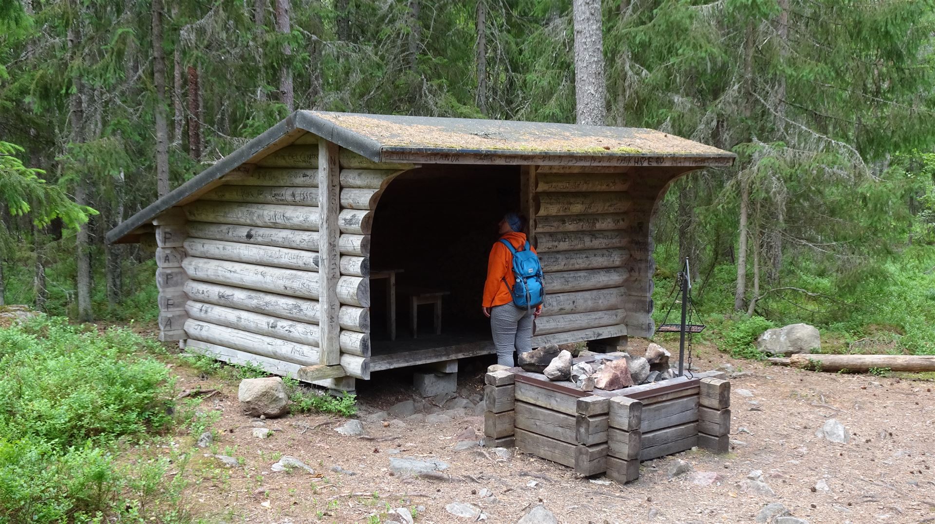 Solche Stellen gibt es in Schweden überall zu finden. Oft ist dazu auch noch bereits gespaltenes Holz zu finden, dass man benutzen kann. Gibt es kein Holz mehr, findet man meistens auch eine Axt und kann selbst handanlegen. Oder man könnte, während das Fleisch gegrillt wird, für die nächsten Griller Holz vorhacken. Soll ja befreiend sein die Axt zu schwingen und könnte eventuell Aggressionen lindern, falls man welche hätte.