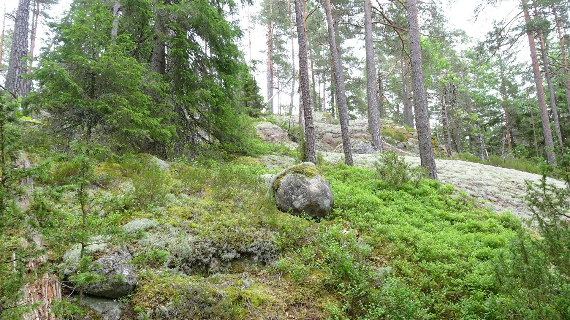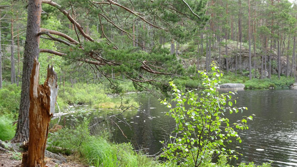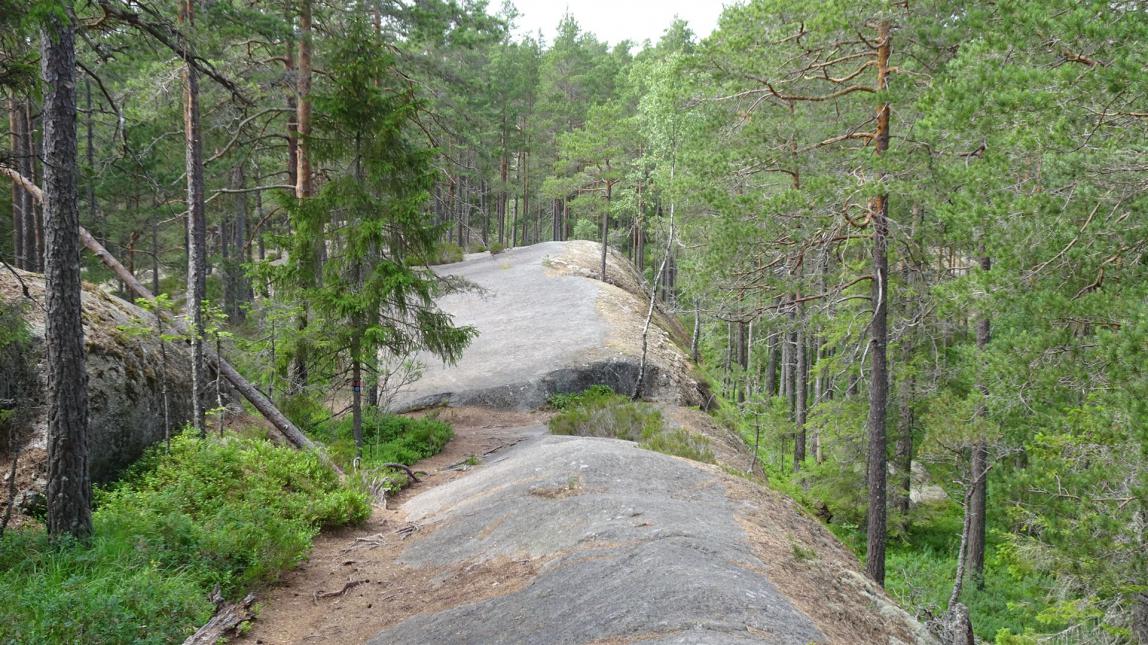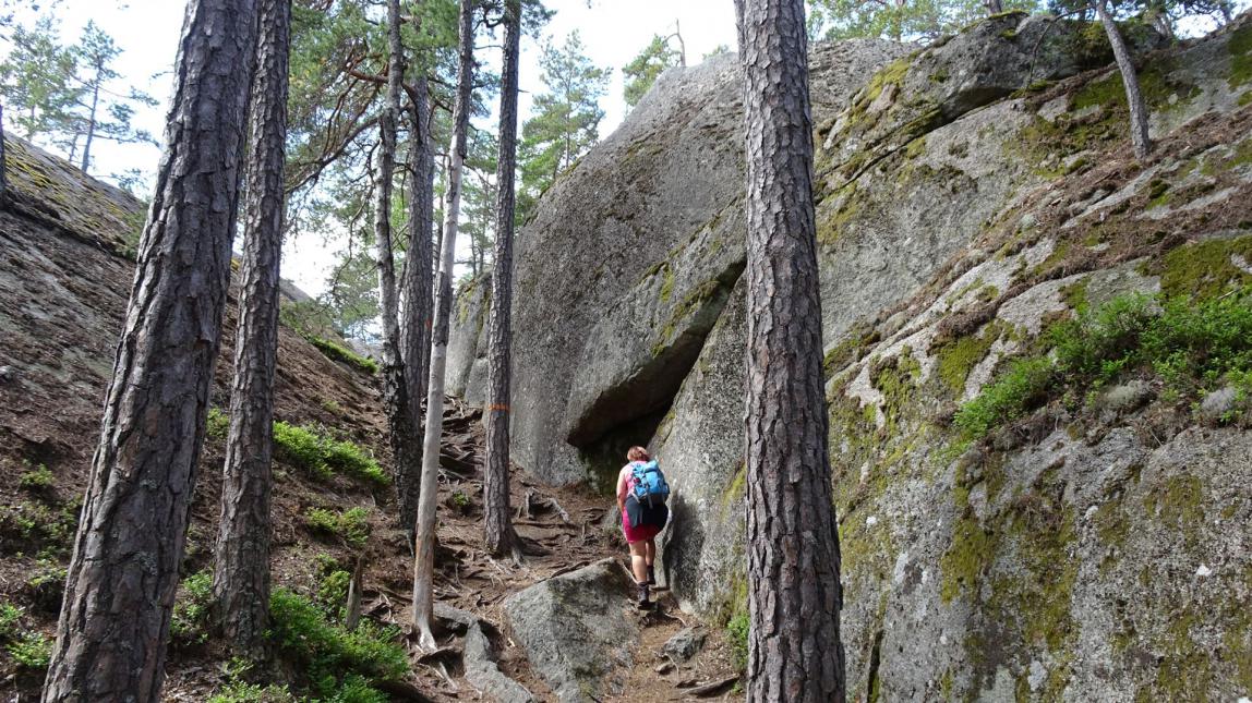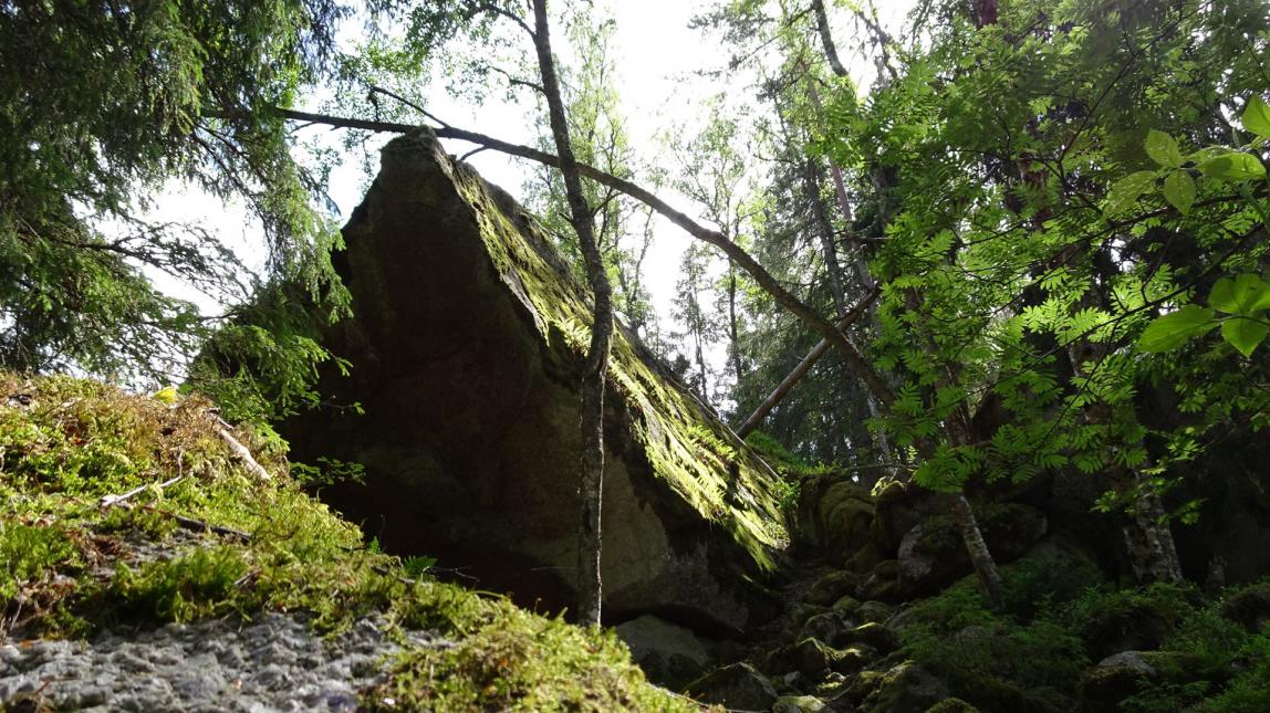 Hier hat das Inlandeis der Eiszeit Geröll und Felsblöcke hin- und hergeschoben und zu teils enormen Haufen aufgeschichtet. Dazwischen gibt es Grotten, Felsritzen und Tümpel. Man sagt, dies sei Schwedens südlichste Wildmark.
