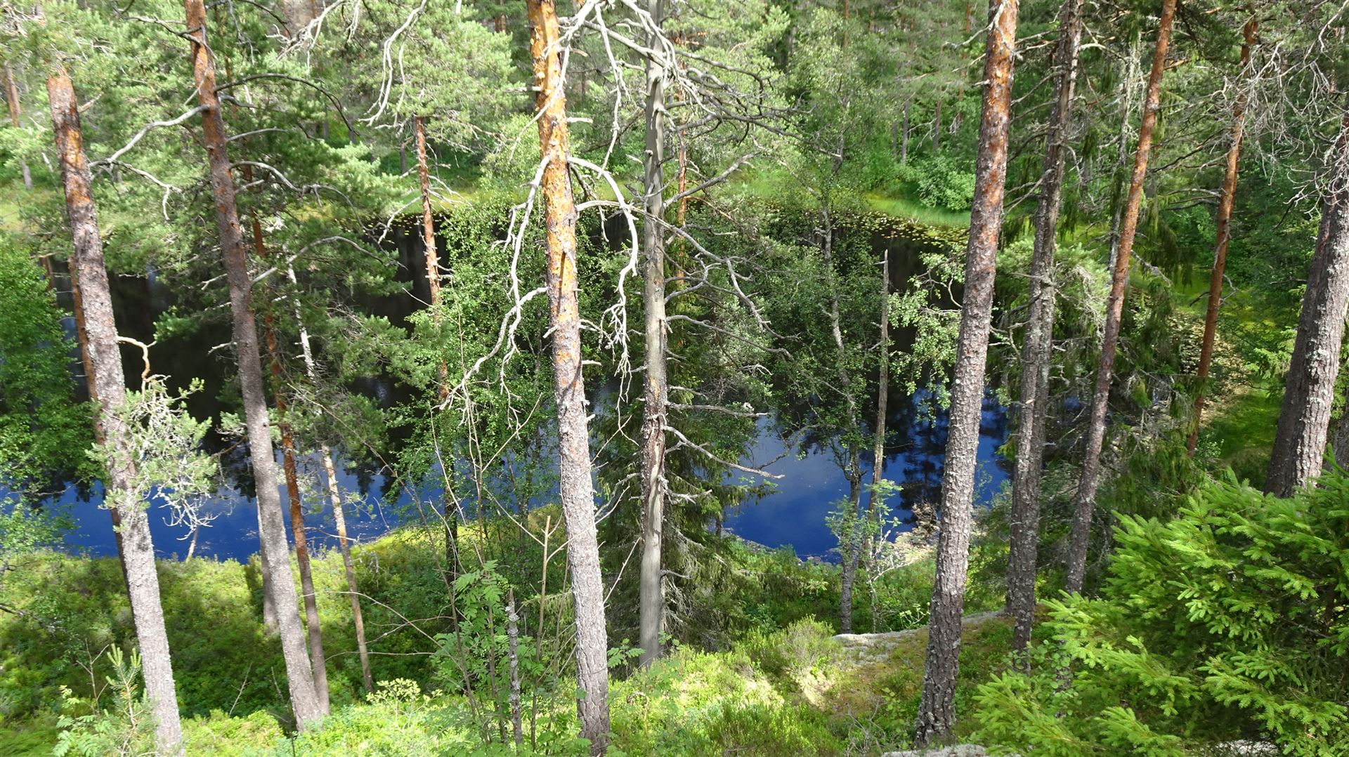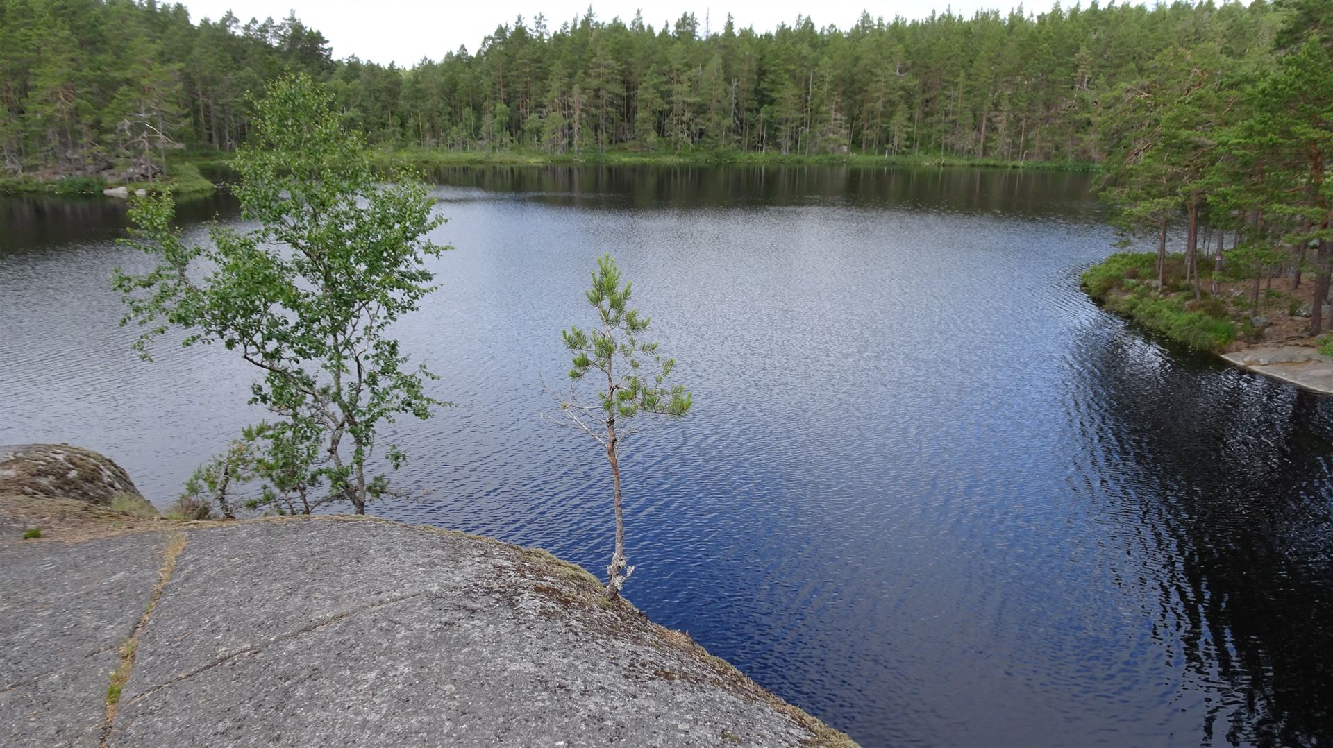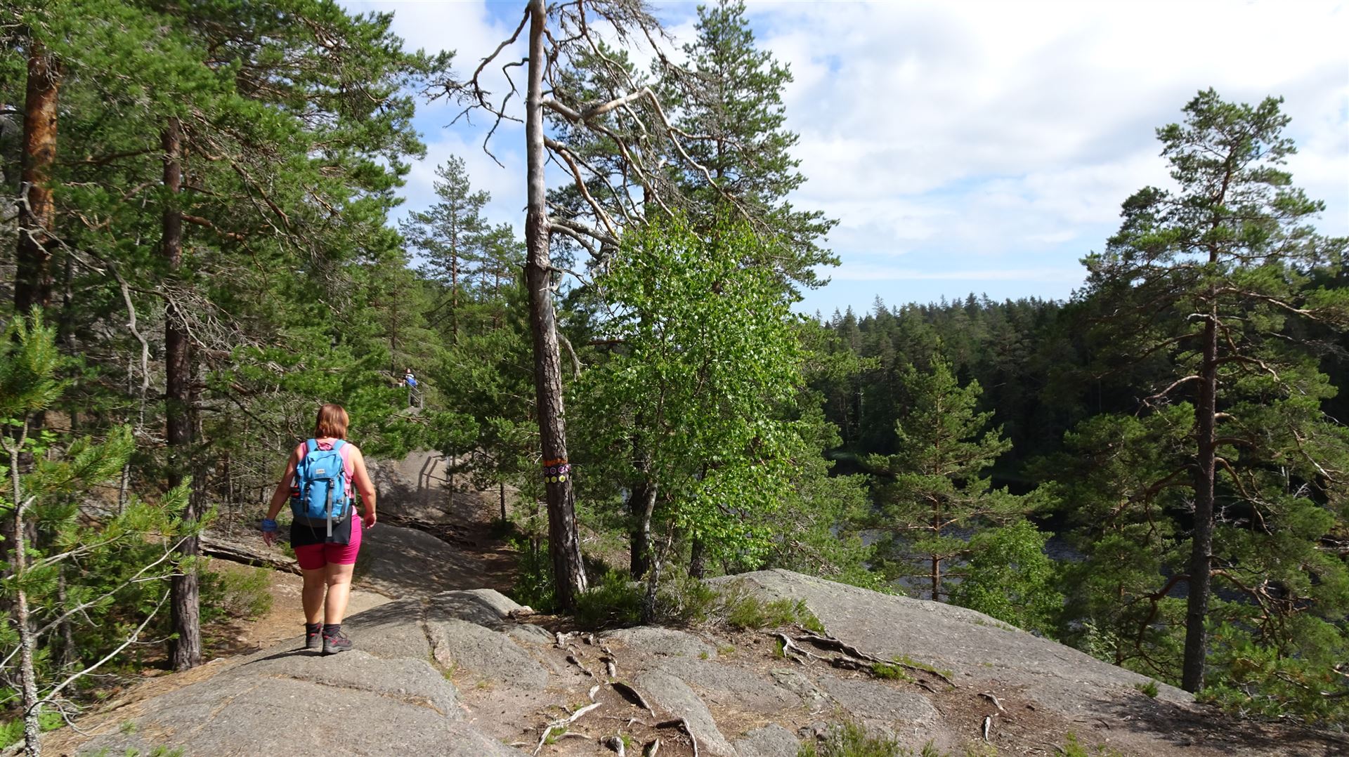 Auf dem weiteren Weg erreicht man dann den Wendepunkt dieser Runde, die Stora Trollkyrka. Dort haben wir oben auf einem Felsen erst einmal etwas Rast gemacht. Ihr kennt uns ja. Zurück zum Parkplatz ging es dann wieder an einigen Seen vorbei.