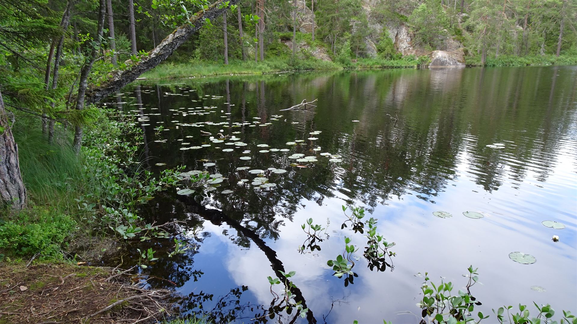 Durch den Park gibt es einige Wanderwege und wir entscheiden uns zunächst einmal für eine östliche Wanderung in Richtung der Stora Trollkyrka. Man tritt ein in eine Wunderwelt von Wäldern, Steinen und Seen.