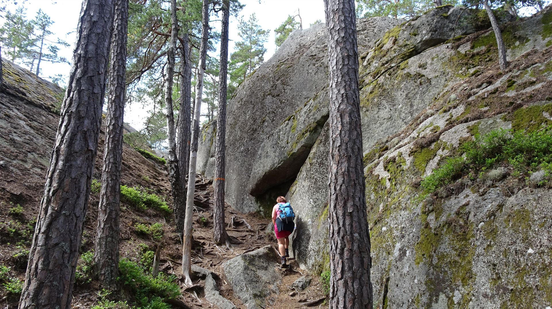 Der Weg ist wirklich zu keinem Zeitpunkt langweilig. Man läuft immer auf engen Pfaden, über Stock und Stein, über Felsenrücken und durch Mooswälder. Hier ist es einfach schön. Ein Stück Land das zum Träumen einlädt. Leider ist mein GPS hier aus irgendwelchen Gründen hin und hergesprungen und damit sind die Aufzeichnungen Makulatur. Laut dem Reiseführer müsste diese erste Runde über Lilla und Stora Trollkyrka ca. 4.5 - 5 km lang sein. Kilometer die sich wirklich lohnen.