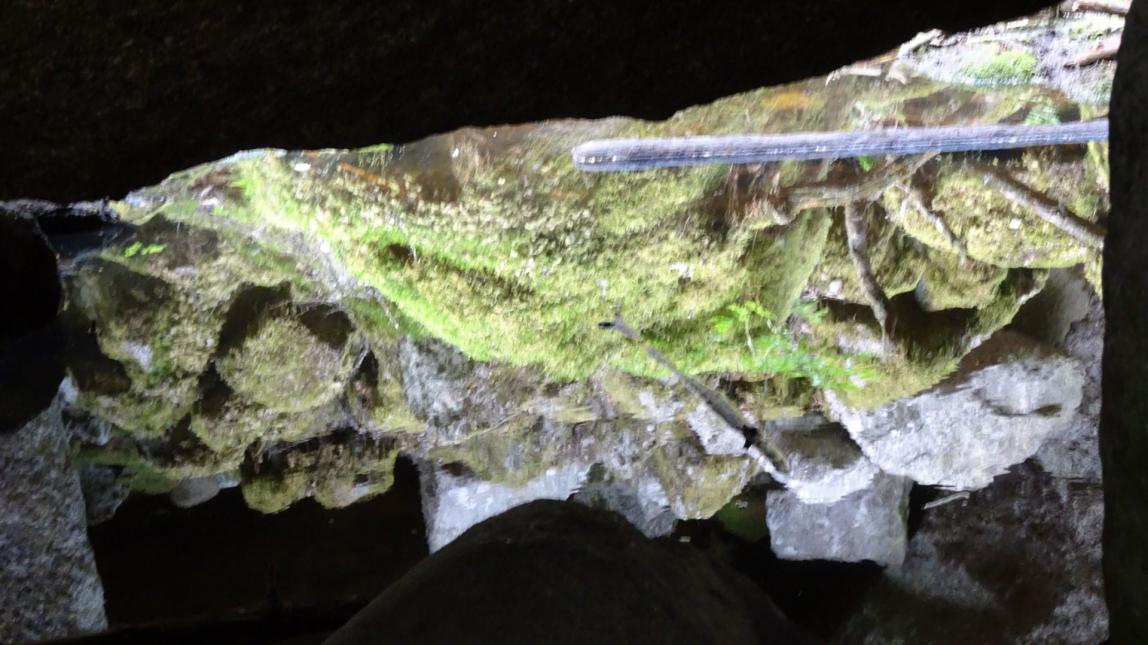 Beim Abstieg von der Aussichtsstelle kommt man noch am Stenkällan vorbei. Stenkällan bedeutet auf deutsch Steinquelle. Warum kann man eventuelle auf den Fotos erkennen, außerdem entstand hier eine Felsgrotte.
