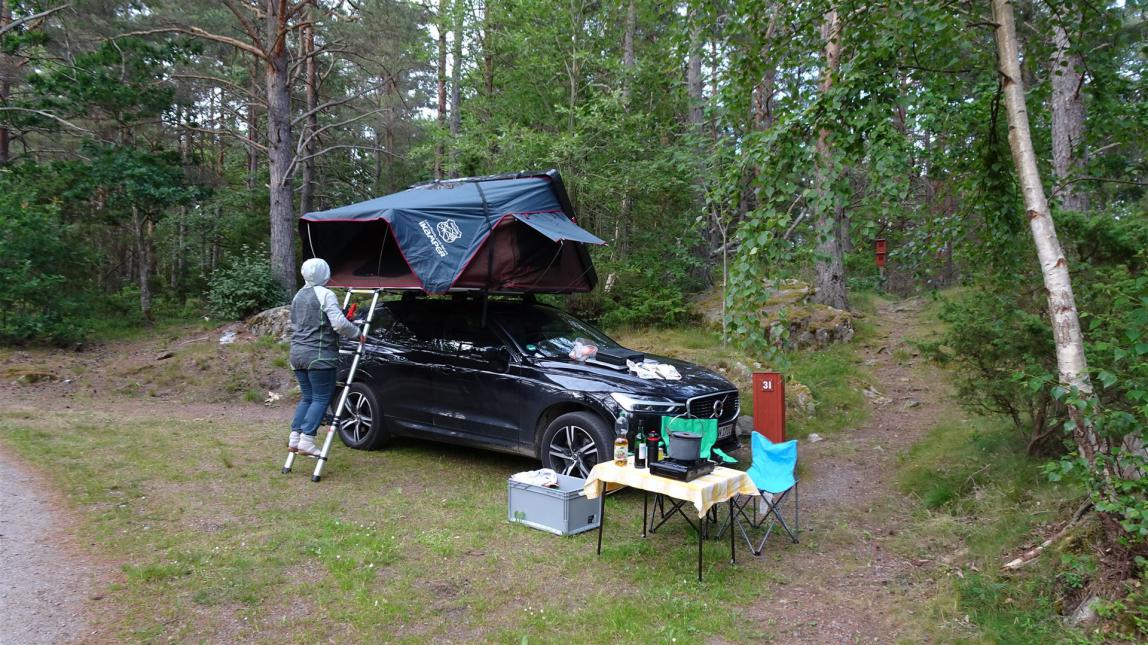 Auf dem Bild könnte man der Meinung sein, es muss ganz schön kalt gewesen sein. War es nicht. Die Stechmücken waren wieder da. Nicht ganz so schlimm, aber doch vorhanden. Wir nutzen noch die Duschen aus und erklommen dann wieder unser herrliches Dachzeltbett. Wer noch nie in einem Dachzelt geschlafen hat, kann nicht mitreden. Einen besseren Schlaf gibt es einfach nicht, aber ich wiederhole mich.