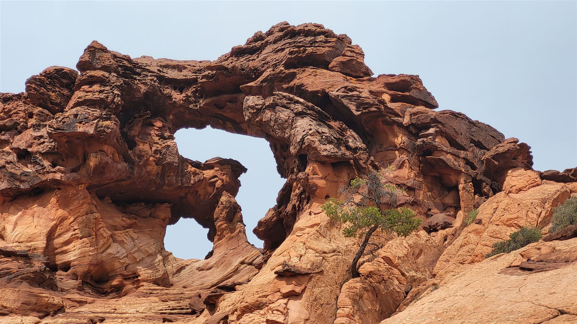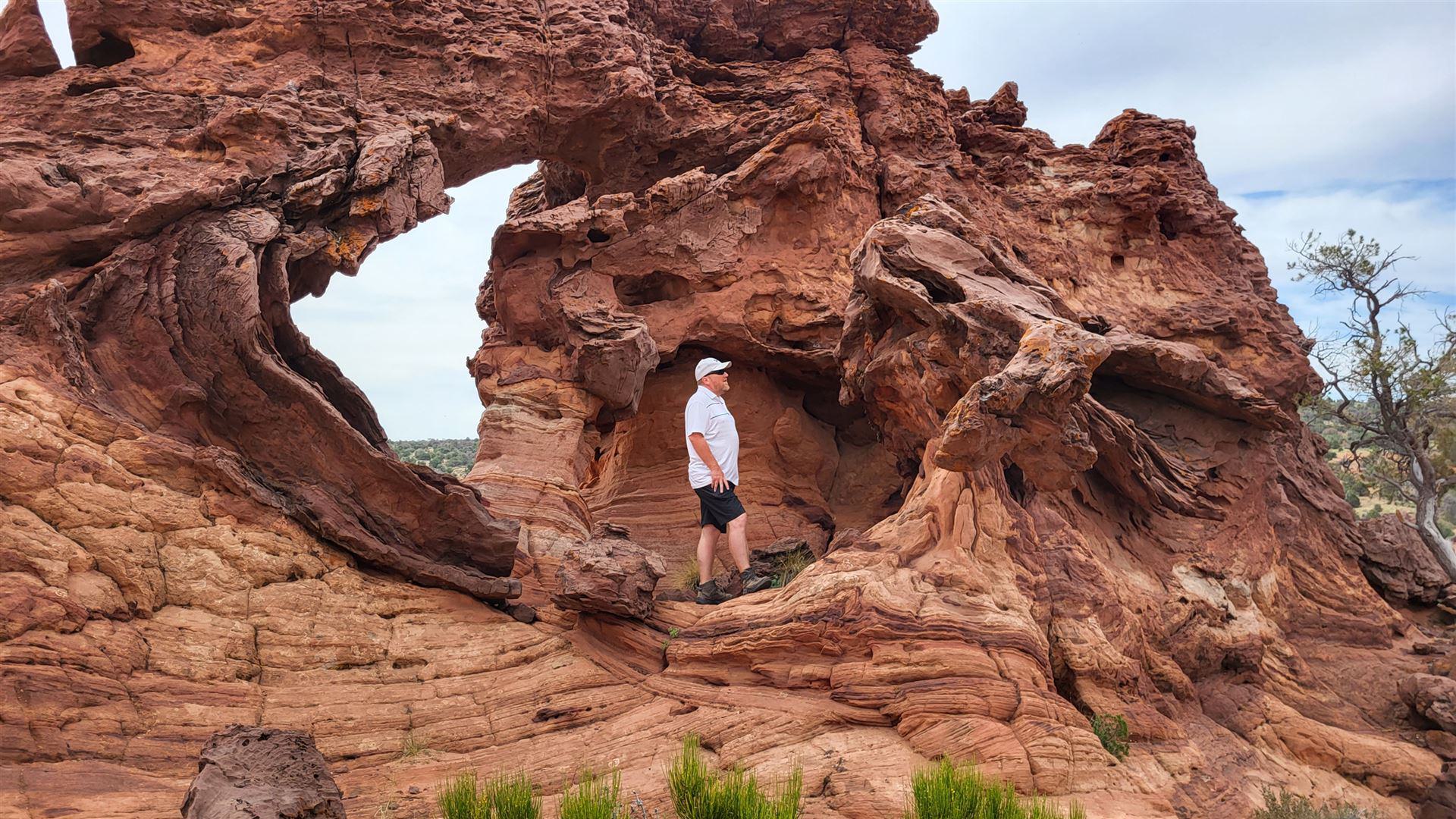Wir haben einen uns bis dato völlig unbekannten Arch gefunden. Offiziell als Double Barrel Arch in der Topo Map meines Gaiagps verzeichnet, hat uns der Name aber nicht so gefallen und wir haben ihn schlicht und ergreifend Jim Knopf Arch genannt. Von der House Rock Valley Road aus sah er nämlich genau wie die legendäre Lokomotive von Jim Knopf aus. Man hätte natürlich auch Emma-Arch sagen können, denn so hieß die Lok von Lukas, der wiederum der Lokomotivführer war. Viele Namen, uns fiel halt nur Jim Knopf ein. Musste reichen.