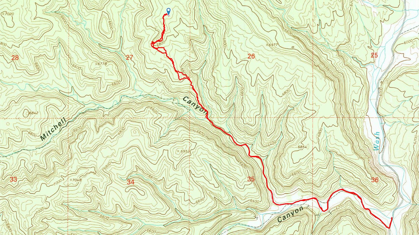 am Anfang eine Jeep-Road, danach weiter im Wash und dementsprechend tiefer Sand und Kies, zum Schluss weglos den Berg hinauf inklusive kleineren Kletterpartien, die aber ohne Probleme zu meistern sind |