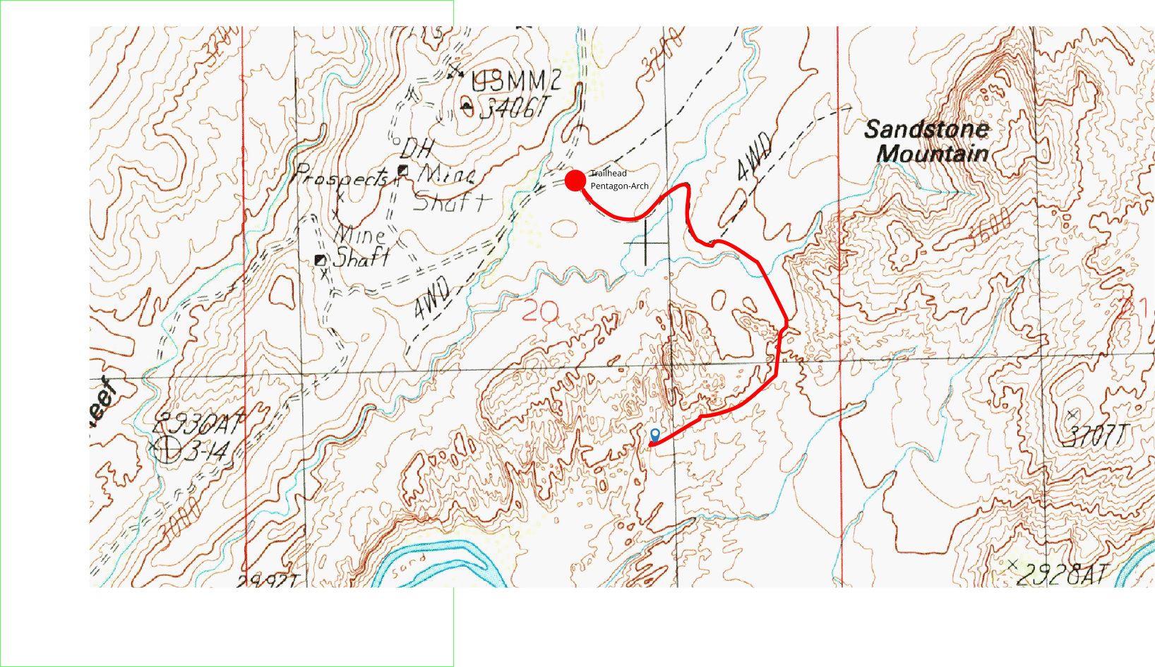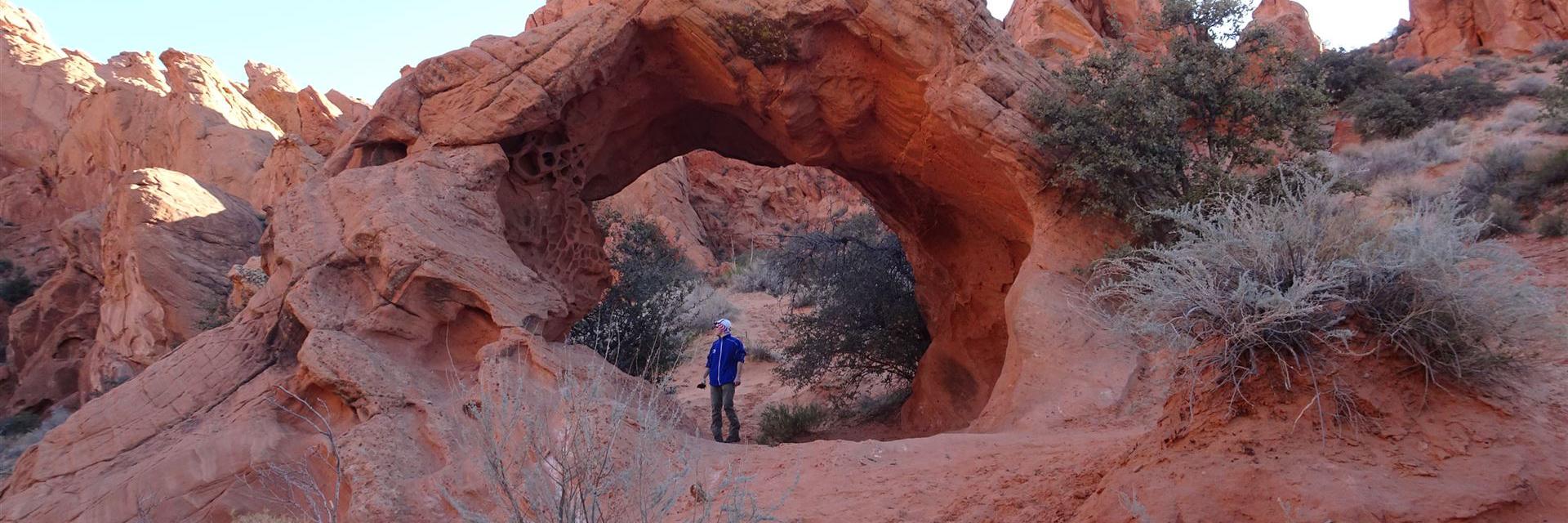 zunächst eine Jeeproad entlang, kurz vor dem Ziel muss man einen sandigen Abhang hinunter und beim Rückweg natürlich wieder hinauf |