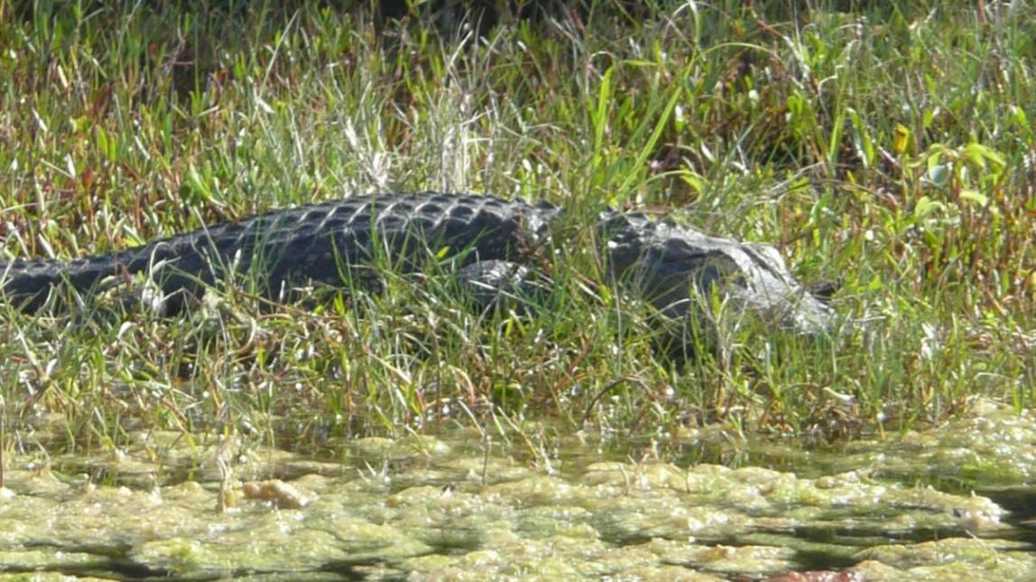 Hier gibt es den sogenannten Black Point Wildlife Drive. Auf der ca. 7 Meilen langen Gravelroad kann man tief in ein Sumpfgebiet vordringen und nicht nur Landschaft, sondern auch viele Tiere bewundern. Leider war unsere Suche nach weiteren Alligatoren zunächst nicht erfolgreich. Dafür war folgendes zu sehen: