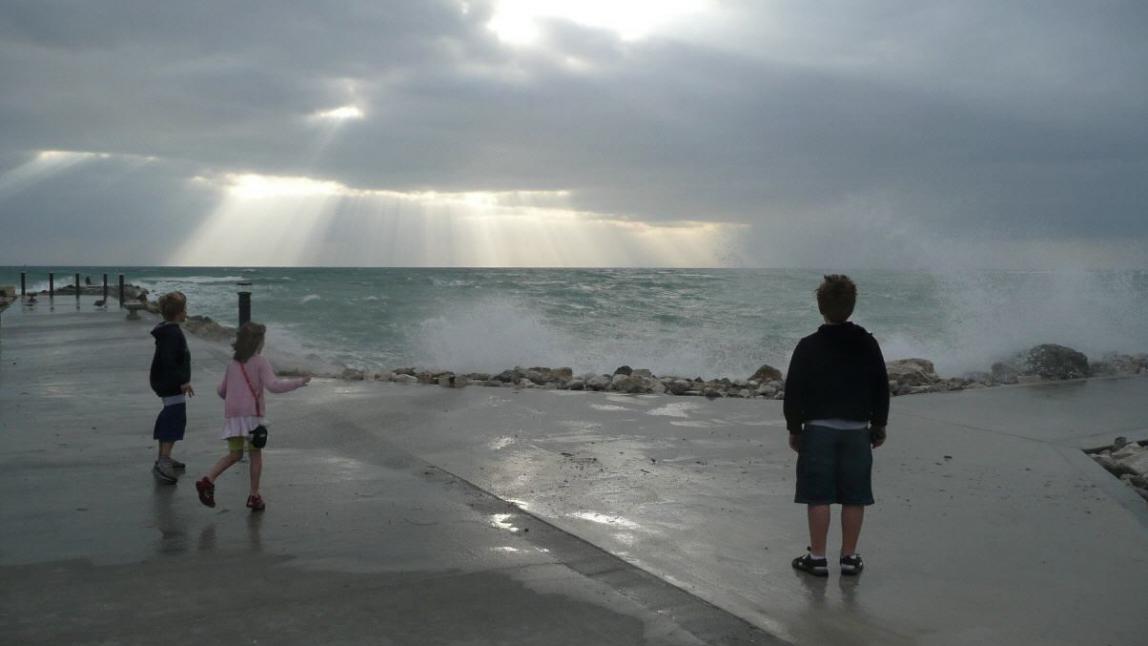 Die Sonne wollte aber nicht richtig herauskommen und zierte sich weiter. Dafür haben meine Kids gleich mal eine morgendliche Dusche genommen.