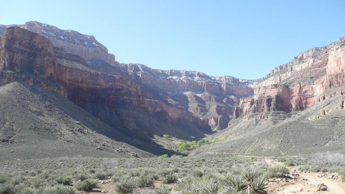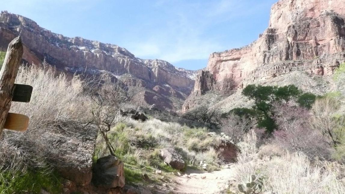 Am Indians Garden erzählte uns ein Wanderer, dies wäre einer der härtesten Winter in den Staaten gewesen und der erste Winter an dem es in allen 50 Bundesstaaten Schnee gehabt hätte, auch in Florida. Wir können das natürlich nicht nachprüfen, aber es hat auf jeden Fall ungewöhnlich viel Schnee auf dem Bright Angel Trail um diese Jahreszeit.