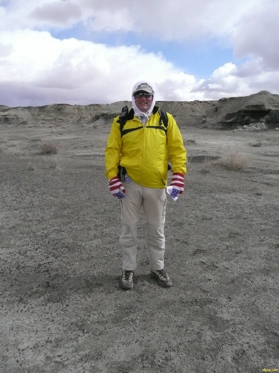 Wir entschieden uns, nach einem wiederum sehr üppigen Motelfrühstück, den Besuch der Bisti Wilderness heute nachzuholen. Wir fuhren auf die I40 in Richtung Osten und verließen diese wieder nach ca. 20 Meilen bei Thoreau. Von dort ging es schnurstracks auf der 371 in Richtung Norden bis das Hinweisschild "Bisti Wilderness" uns nach rechts schickte. Von hier waren es dann noch ca. 1.5 Meilen bis zum Parkplatz. Ein Auto stand dort heute etwas verloren herum. Die Besitzer des Wagens kamen gerade zurück und einer der Insassen wollte uns unbedingt Richtung Norden am Zaun entlang lotsen, denn da würden ganz tolle Formationen kommen. Wir aber hatten die Karte von Steffen Synnatschke ausgedruckt und wollten lieber diesen Angaben folgen. Ob dies unser Freund aus dem anderen Wagen verstand, kann ich nicht beurteilen.