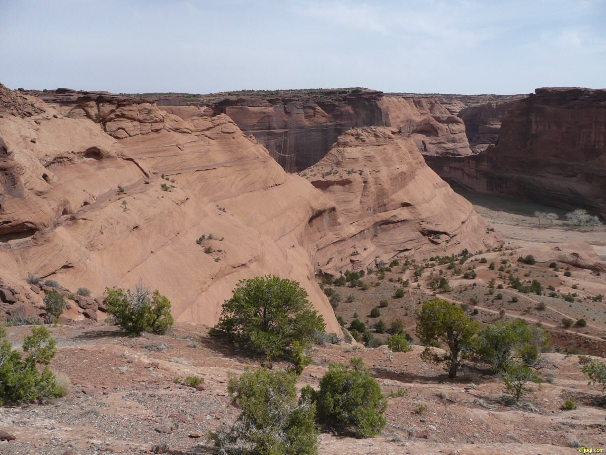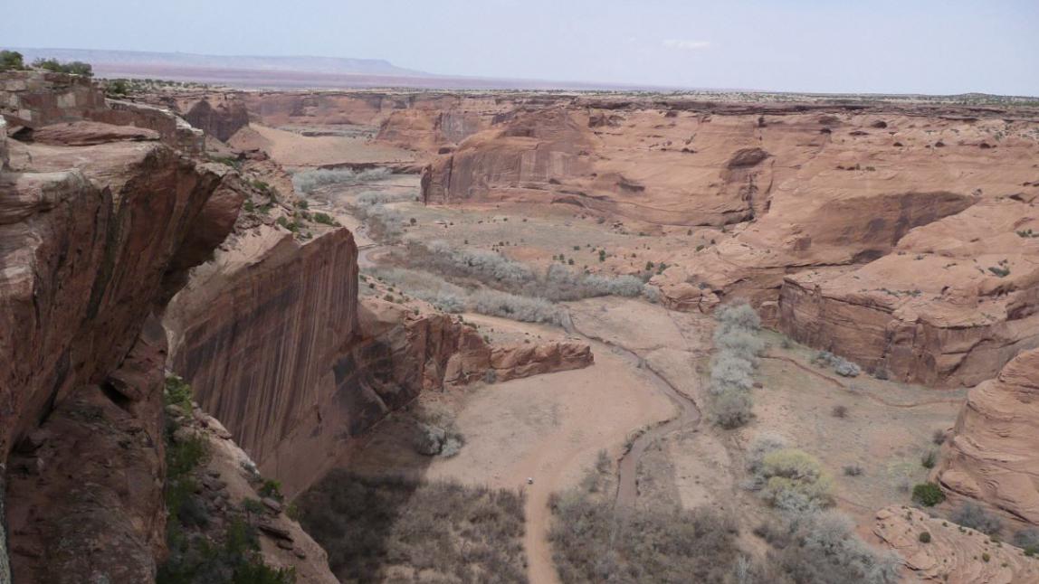 Gegen Mittag erreichten wir Chinle. Hier befindet sich der Eingang zum Canyon de Chelly National Monument. Ein Monument das übrigens kein Geld kostet. Als ich im Visitor Center meinen Nationalparkpass vorzeige, wird mir dies von der Rangerin erklärt. Auf die Frage wieviel Zeit wir hier verbringen möchten, frage ich sie einfach zurück wieviel Zeit sie vorschlagen würde. Sie schaut mich nur mit großen Augen an und kann mit meiner Antwort nichts anfangen. Erst als ich ihr die Zahl 3 nenne fährt sie mit ihren Vorschlägen weiter. Wir könnten doch den White House Trail machen. Der einzige Weg in den Canyon der ohne Führer gegangen werden kann.