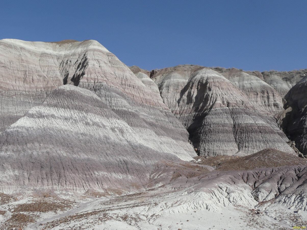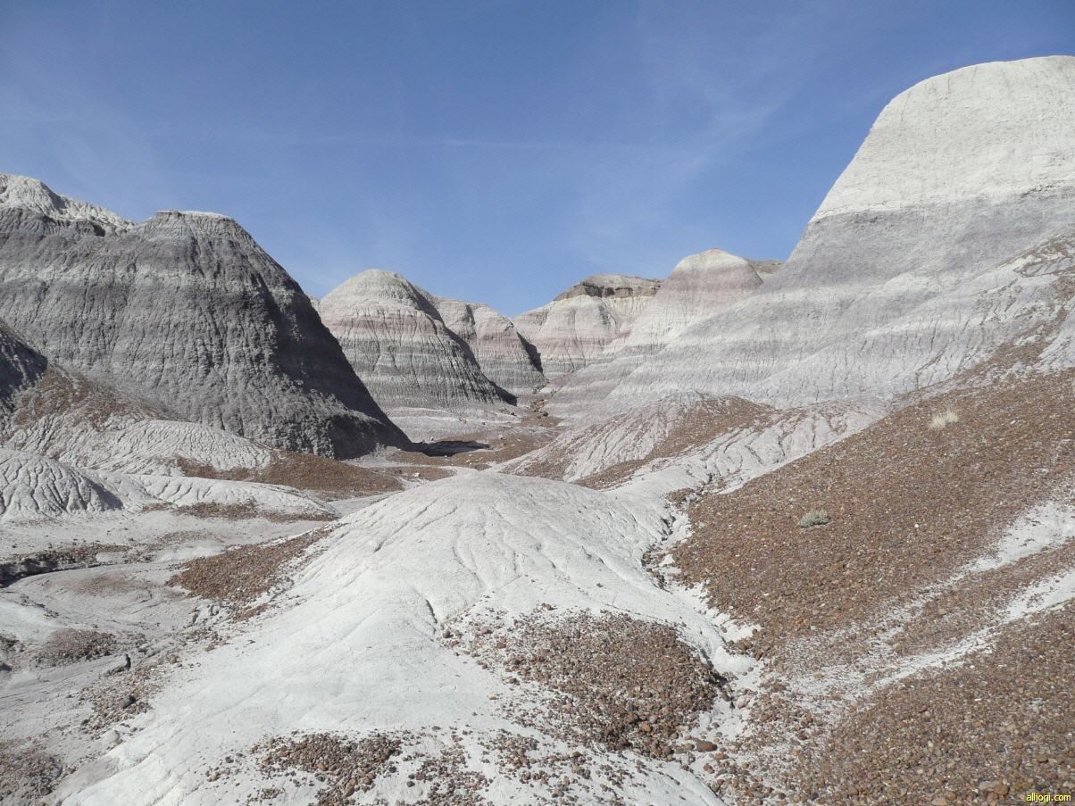 Auch hier liegt schon überall versteinertes Holz herum. Weiß eigentlich jemand, warum das versteinerte Holz aussieht als wenn es mit der Kettensäge in Stücke geschnitten worden wäre? Vor 225 Millionen Jahre gab es mit an Sicherheit grenzender Wahrscheinlichkeit noch keine Kettensägen.