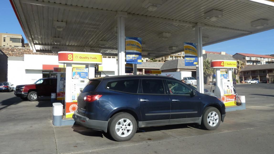 Gegen 15 Uhr bekamen wir wieder festen Boden unter unseren Traverse. Ohne Plattfuß oder sonstigen Pannen überstand unser Chevy den Arizona Strip und hat sich ein Sonderlob wirklich verdient. Wenn er auch nicht wie ein richtiger Geländewagen aussieht, hat er doch gezeigt was in ihm steckt. Auch größere Steinstufen hat er ohne Aufsetzen überwunden. Vor allem seine Reifen haben durchgehalten. Die waren meine größte Sorge gewesen. Gott sei Dank unbegründet. Deswegen geht der heutige Award of the Day an unseren Chevy Traverse AWD