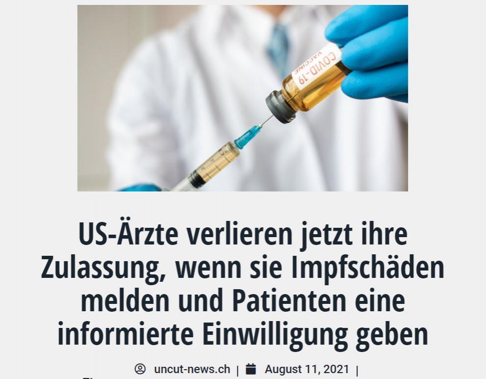 Zitat: Am 29. Juli 2021 warnte die Federation of State Medical Boards (FSMB) alle Angehörigen der Gesundheitsberufe, dass sie ihre ärztliche Zulassung verlieren könnten, wenn sie sogenannte „COVID-19-Impfstoff-Fehlinformationen“ erstellen oder verbreiten.