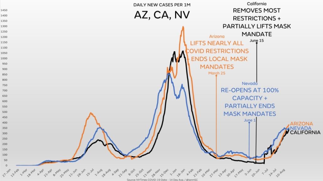 Im Bericht selbst gibt es noch viel mehr Beispiele. Es wird glaube ich ziemlich klar, die Maßnahmen haben keine Auswirkungen auf das Infektionsgeschehen. Einfach überhaupt nicht. Die Zahlen lügen in diesem Fall eben nicht. Es wird ja überall gleich gelogen.