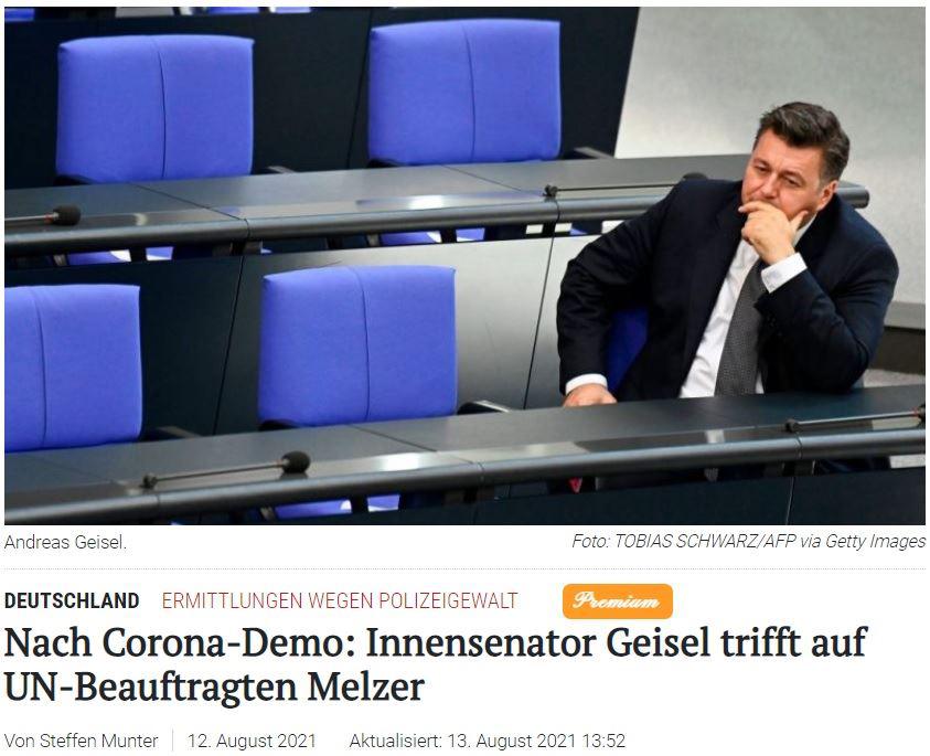 Echt! Wirklich! Es gab Einzelfälle wo Verhältnismäßigkeiten nicht gewahrt worden wären? Nein, das kann ich nicht glauben. Wo doch die Polizei, dein Freund und Helfer oder wie es in Berlin heisst: „Da für Dich“ sehr kooperativ gegenüber den Demonstranten aufgetreten ist? Ich war nach den Demos geschockt, weil ich so viel Lust auf Gewalt von Seiten der Polizei noch nie gesehen habe. Wenn das ohne Folgen bleibt, dann weiß ich nicht mehr. Verantwortlich für das Vorgehen ist aber auf jeden Fall Hr. Geisel. Einer wie er kann und darf nicht in seinem Amt bleiben. Aber das wird ihn nicht jucken.