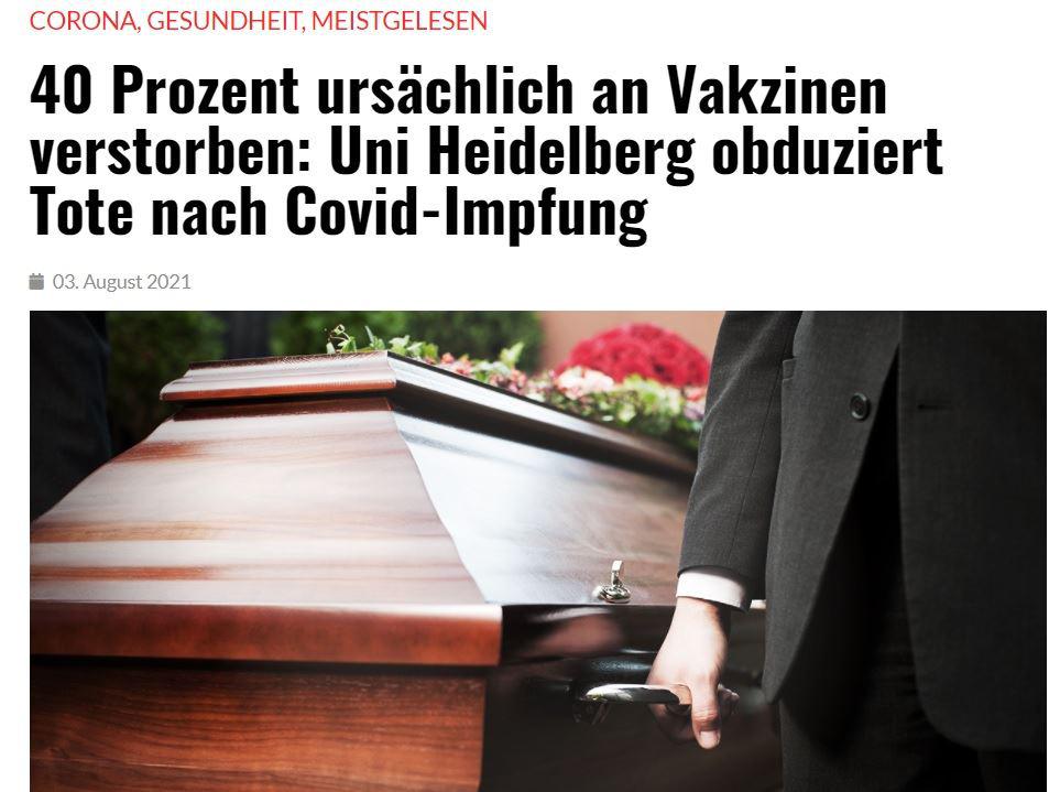 Seit etwa einem Jahr nun werden in Heidelberg Patienten obduziert, die mutmaßlich an einer Covid-19 Infektion verstorben sind. Man erhofft sich daraus neue Erkenntnisse und ein besseres Verständnis für die Krankheit. Das Land Baden-Württemberg unterstützt die Forschung mit 1,8 Millionen Euro. Peter Schirmacher, Direktor des Pathologischen Instituts in Heidelberg, ist Leiter dieses Projekts und berichtet nun über beunruhigende Forschungsergebnisse – und fordert gleichzeitig bundesweit mehr Obduktionen von Toten, die im zeitlichen Zusammenhang mit einer Covid-19 Impfung verstorben sind. Es dauerte nicht lange, bis STIKO und Paul-Ehrlich-Institut dem Vorhaben vehement widersprachen. ....