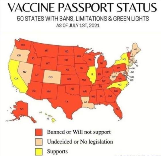 In den USA gibt es ebenfalls nicht mehr viele Bundesstaaten die am Gesundheitspass und seiner Notwendigkeit am sozialen Leben teilzuhaben festhalten. Auch hier eine Übersicht: