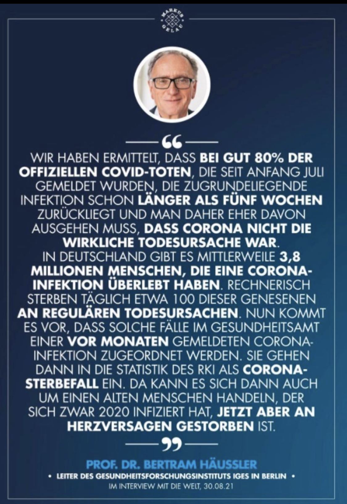 Völlig sprachlos aufgrund der Vielzahl der Beweise, auch von Seiten des RKI´s, der WHO, der CDC usw. endet der Sommer 2021. Wir dürfen auf den Herbst und Winter 21/22 gespannt sein. Wie wird es werden? Wird auch eine neue Bundesregierung, den eingeschlagenen Weg des Betrügens und der diktatorischen Verfahrensweisen, weiterverfolgen? Wie lange wird sich die Mehrzahl der Bevölkerung dies noch gefallen lassen?