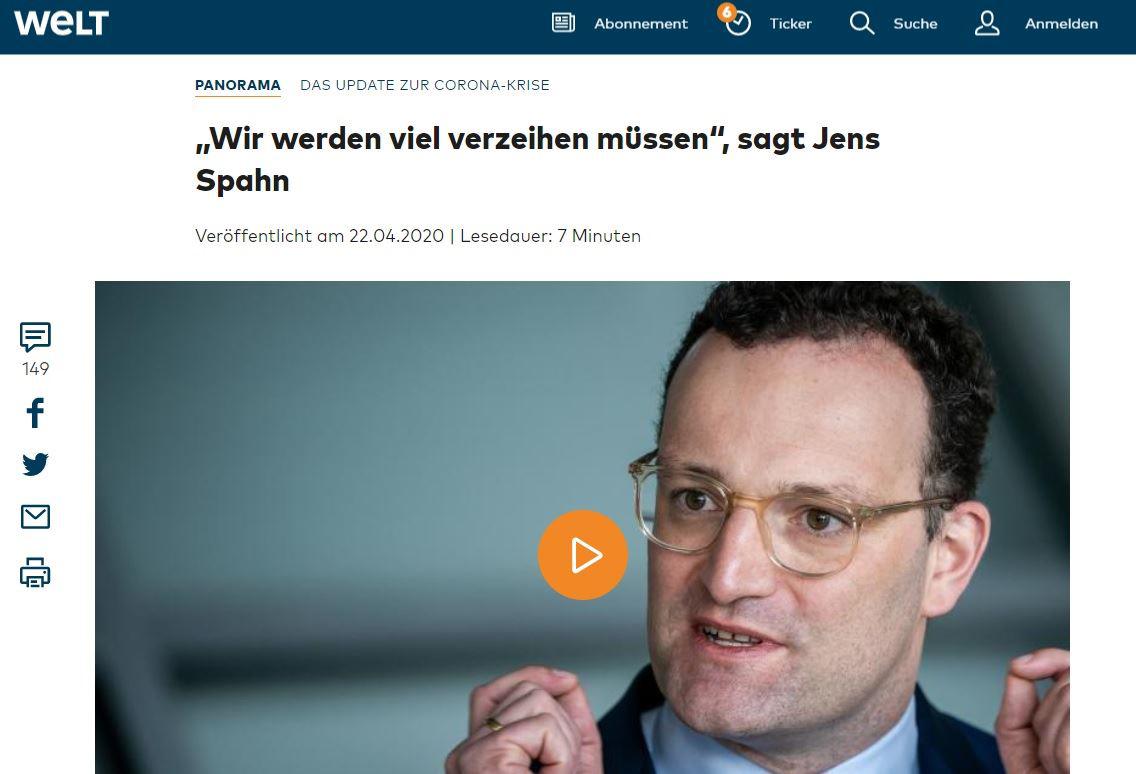 Ich hoffe wirklich, in einer nicht allzu fernen Zukunft wird das Bild klarer und wir erfahren mehr über das Wie und Was. Im Moment ist alles nur Spekulation. Vielleicht hat ein Hr. Spahn aus Versehen einen Satz gesagt, der ein kleines Spotlight auf die Dinge im Hintergrund fallen lässt: