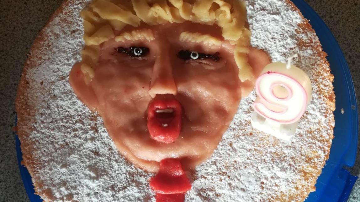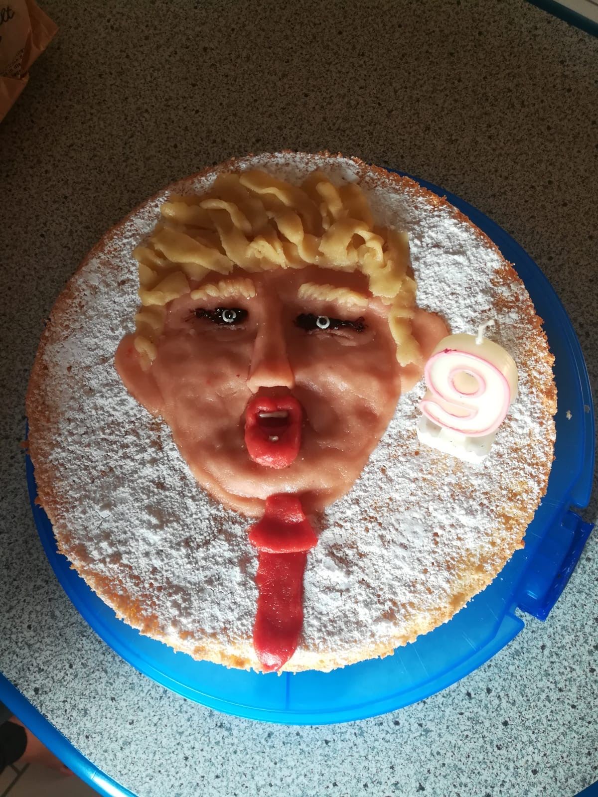 Ihr dürft raten wer dargestellt ist. Das Motto des Kuchens war "Fake News". Auch dürft ihr nicht vergessen, ich durfte mit dem Messer zustechen.