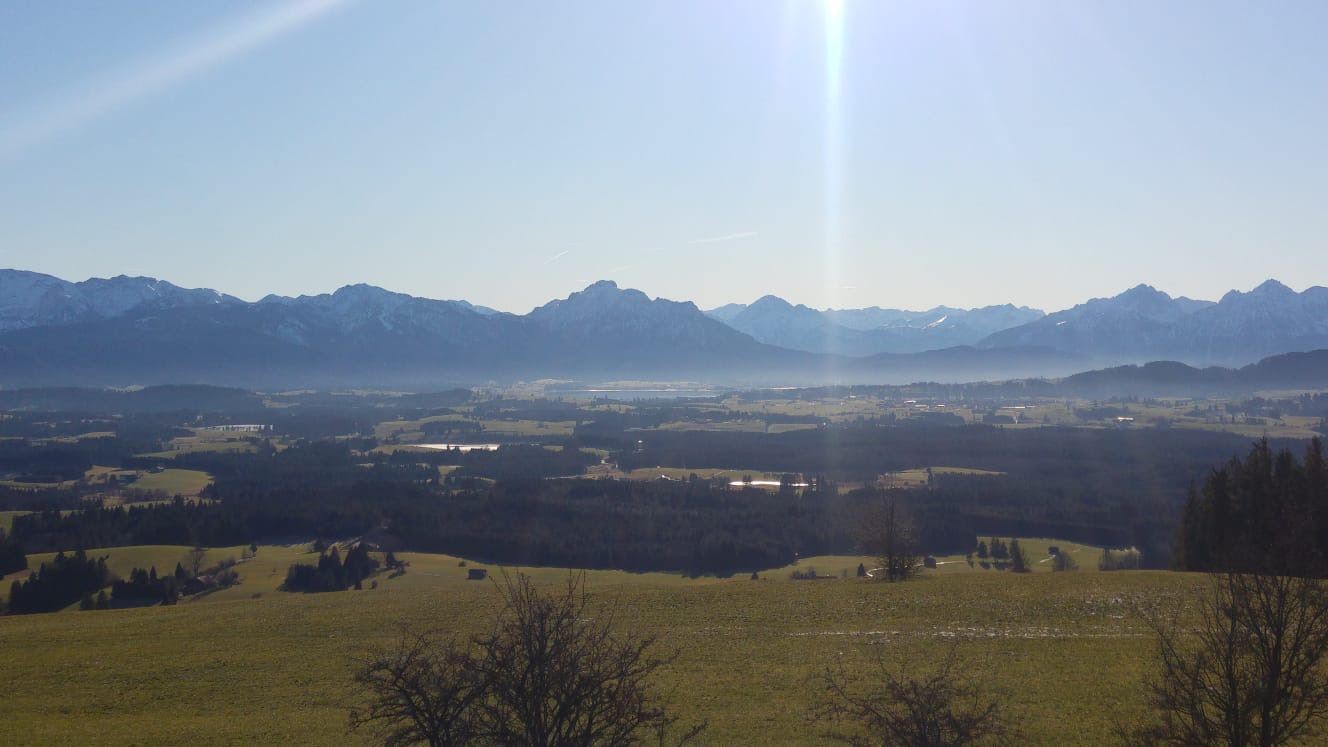 Das ist der Blick vom Auerberg in Richtung Süden. Ein Blick der einfach unbeschreiblich schön ist. Wie oft waren wir schon da oben auf der sogenannten Buffernandl gesessen und haben diese Aussicht genossen. Einfach einzigartig. Wenn ihr in der Nähe seit, einfach mal mit dem Auto auf den Auerberg fahren und die 500 m vorlaufen zu dieser Stelle. Es lohnt sich.