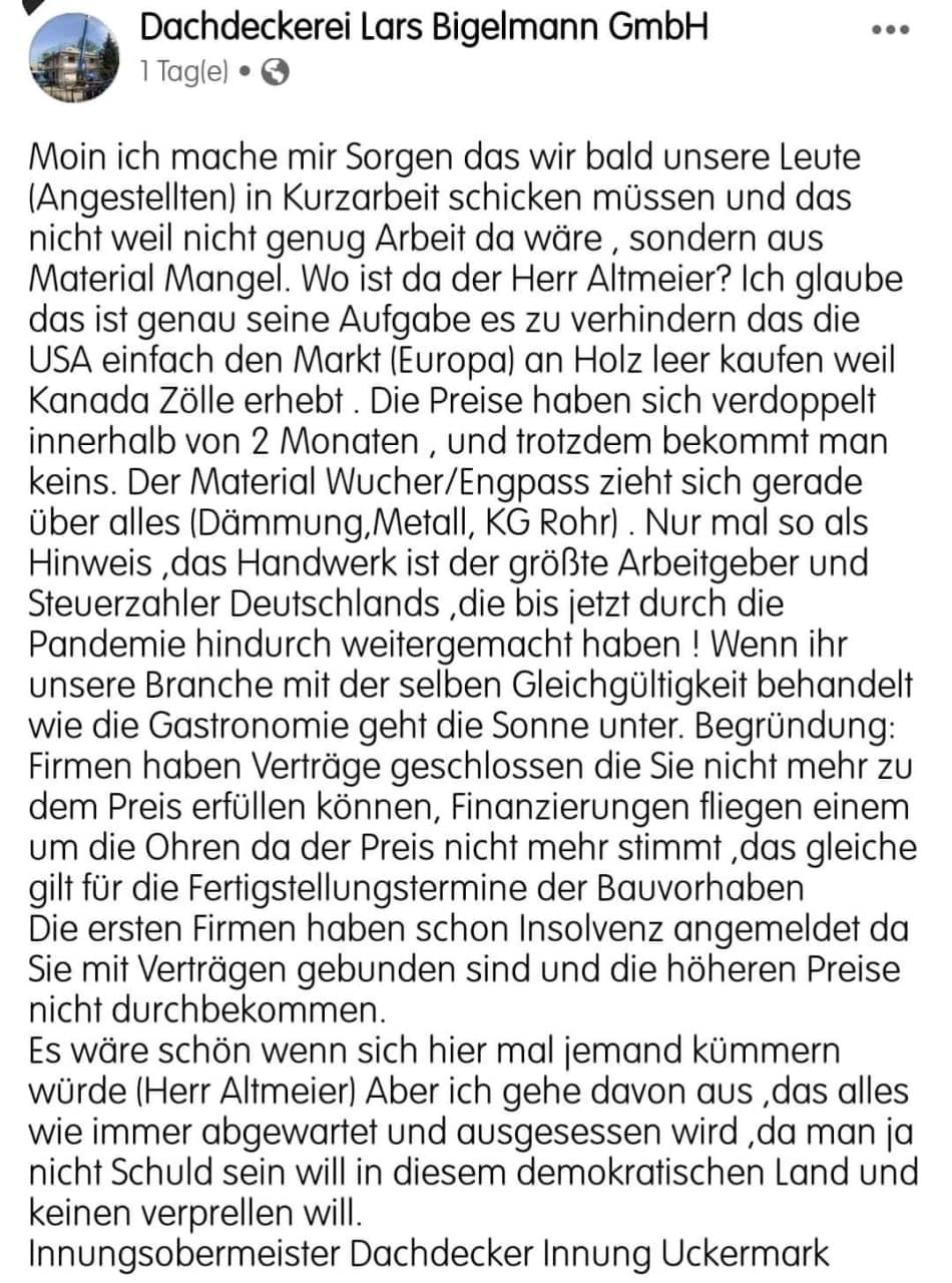 Schließen wir den Tag mit einem Leserbrief eines Dachdeckermeisters: