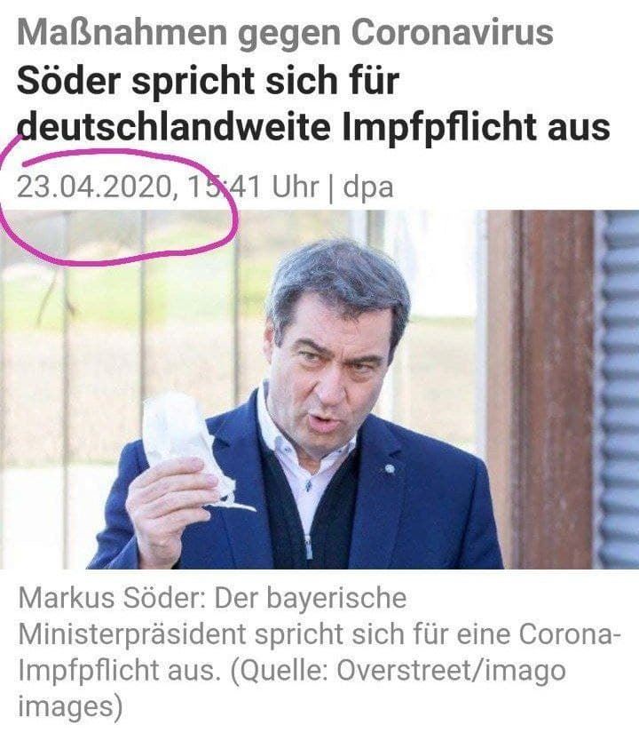 Einer der von Anfang an für die Impfpflicht war ist das Markusle. Von ihm konnten man das aber auch erwarten.