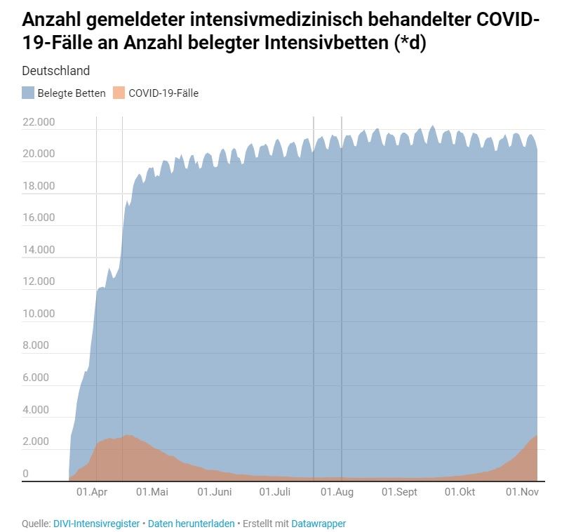- Belegung der Intensivbetten am 01. November 2020: 20.953