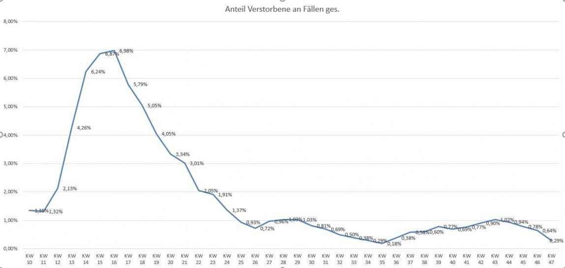 5. Die Corona-Sterblichkeit nimmt seit dem Frühjahr deutlich ab. Es wird auch aus wissenschaftlicher Sicht daher immer plausibler, sich auf den Schutz der Risikogruppen und der Hochbetagten zu konzentrieren.