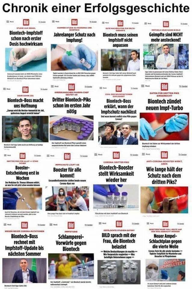 Während weltweit die Pandemie in immer mehr Ländern beendet wird, erkennt man in der Welt Deutschland aufgrund seiner irrsinnigen Zustände nicht wieder. Der Spiegel macht Lanz für Corona-Tote verantwortlich, der Grüne Beck bezeichnet nicht Geimpfte als verantwortungslose, die Gesellschaft terrorisierende Minderheit und Böhmermann offenbart wiederholt sein totalitäres Denken, indem er Andersdenkende bzw. Kritiker als "durchtränkt von Menschenfeindlichkeit" bezeichnet. Aber es gibt auch positive Beispiele, wie z. B. Til Schweiger, der klar Position gegen die Impfung von Kindern bezieht, mit anderen Prominenten den Film "Eine andere Freiheit" veröffentlichen wird und als Schwurbler diffamiert wird.