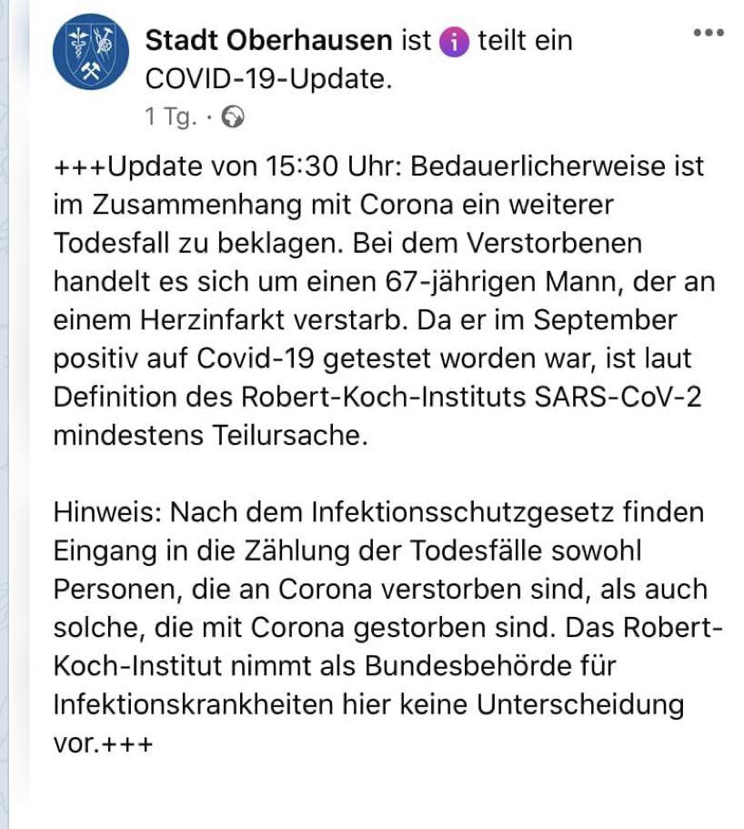 Zum heutigen Abschluss noch einen Post der Stadt Oberhausen. Auch so kann man die Statistik im RKI nach oben treiben: