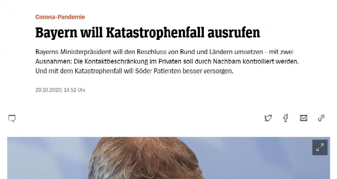 "Bayerns Ministerpräsident will den Beschluss von Bund und Ländern umsetzen - mit zwei Ausnahmen: Die Kontaktbeschränkung im Privaten soll durch Nachbarn kontrolliert werden...."