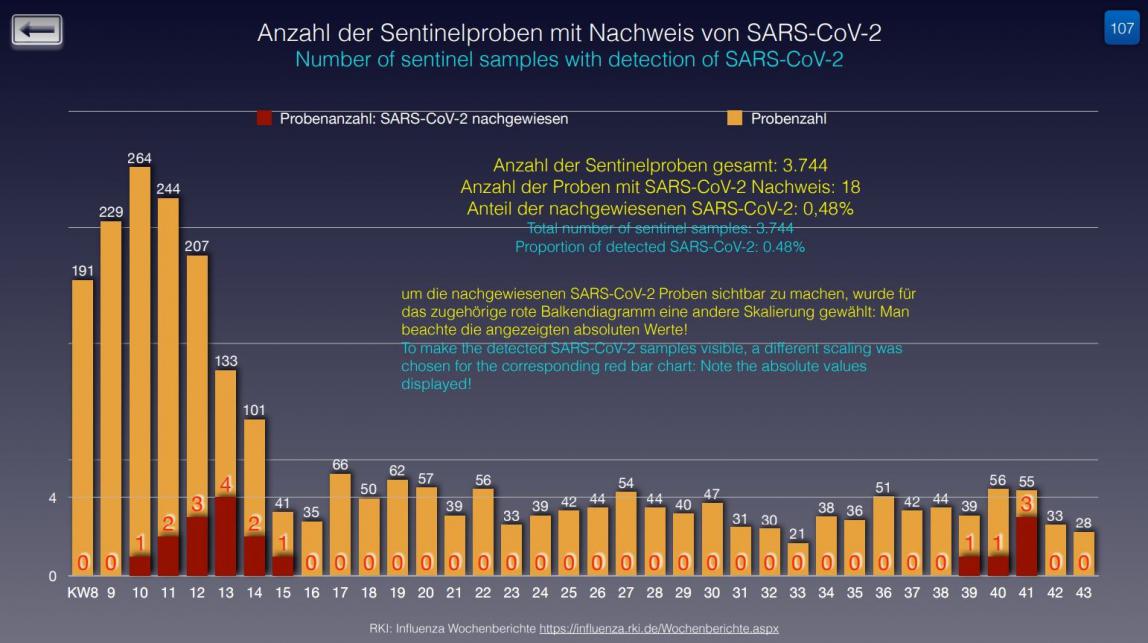 Zum Ende lasse ich euch jetzt noch allein mit einer Grafik der Sentinelproben bis KW43: