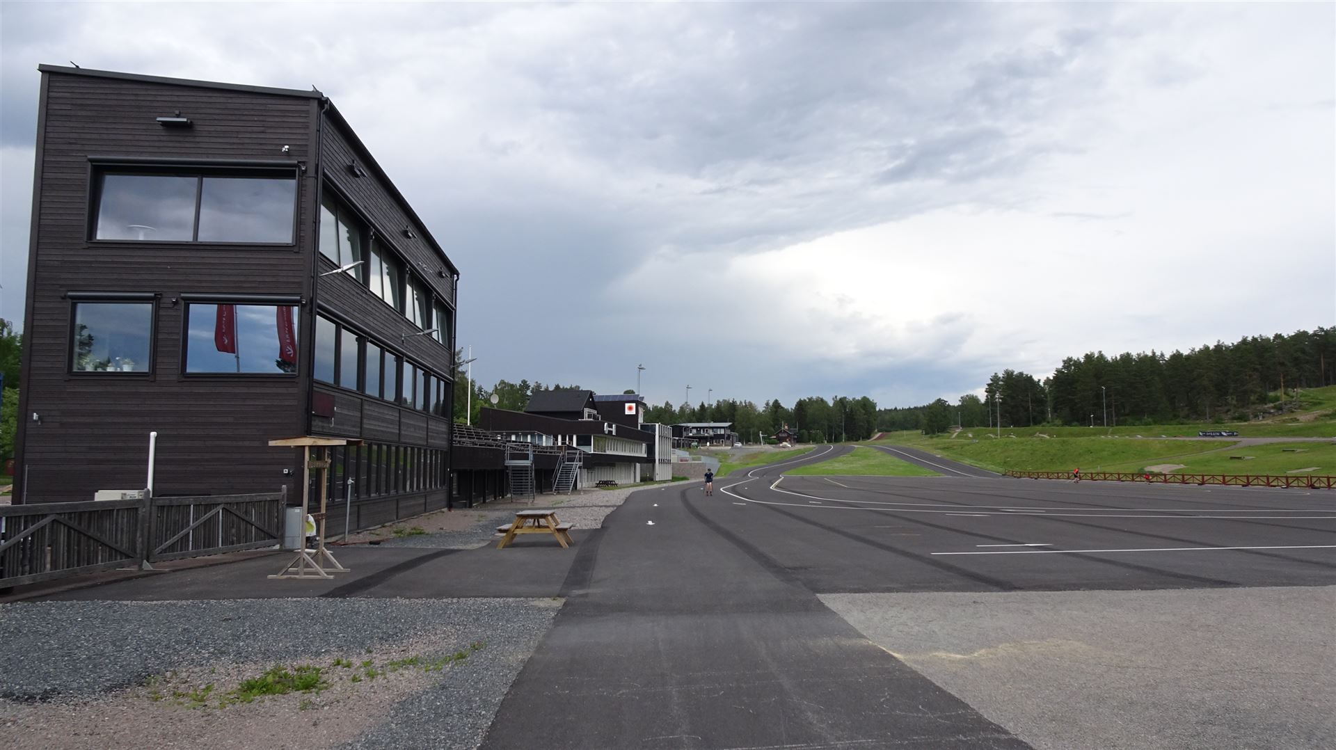 Die Berge, besser Hügel hinter den Schanzen sind durchzogen von Skilanglaufwegen. Im Winter sicher ein Traum hier Ski zu laufen. Aber auch jetzt im Sommer sind die Wanderwege gut ausgeschildert und wunderbar zu belaufen. Fast schon etwas zu gut.