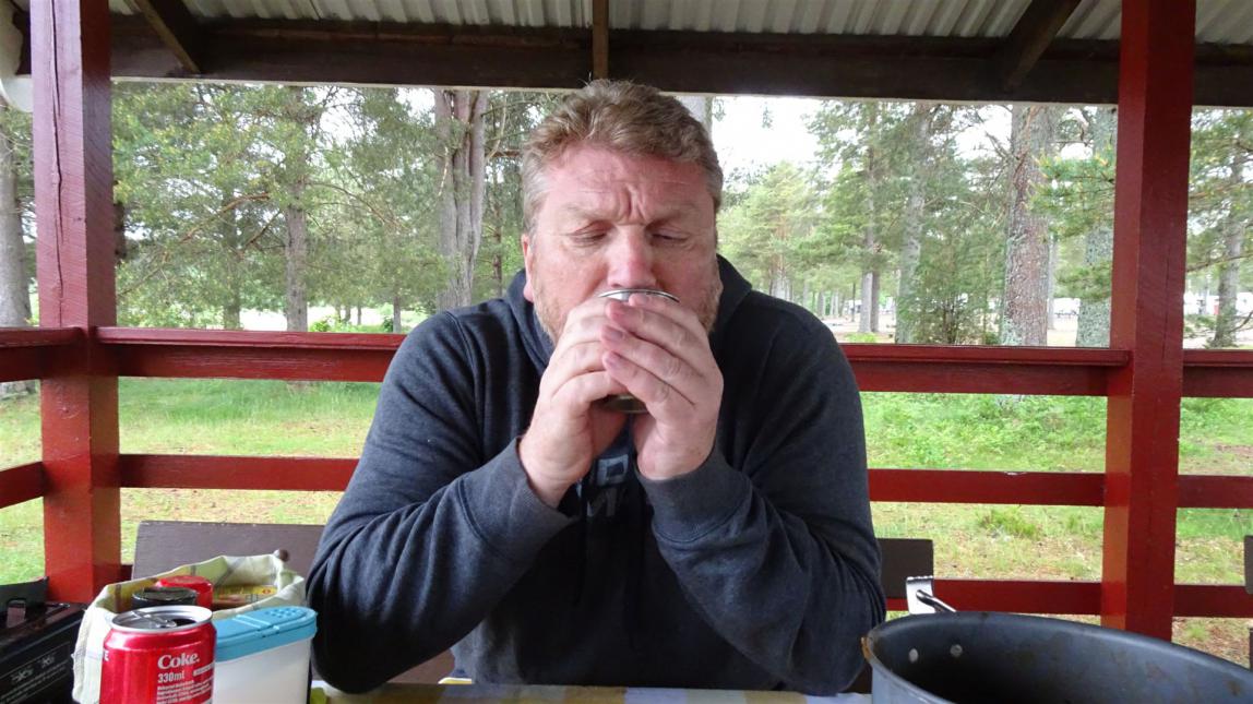 Leider fing es dann auch noch an zu regnen. Machte aber nichts, denn auf dem Campingplatz gab es überdachte Picknickplätze und wir konnten dort unser Essen zubereiten.