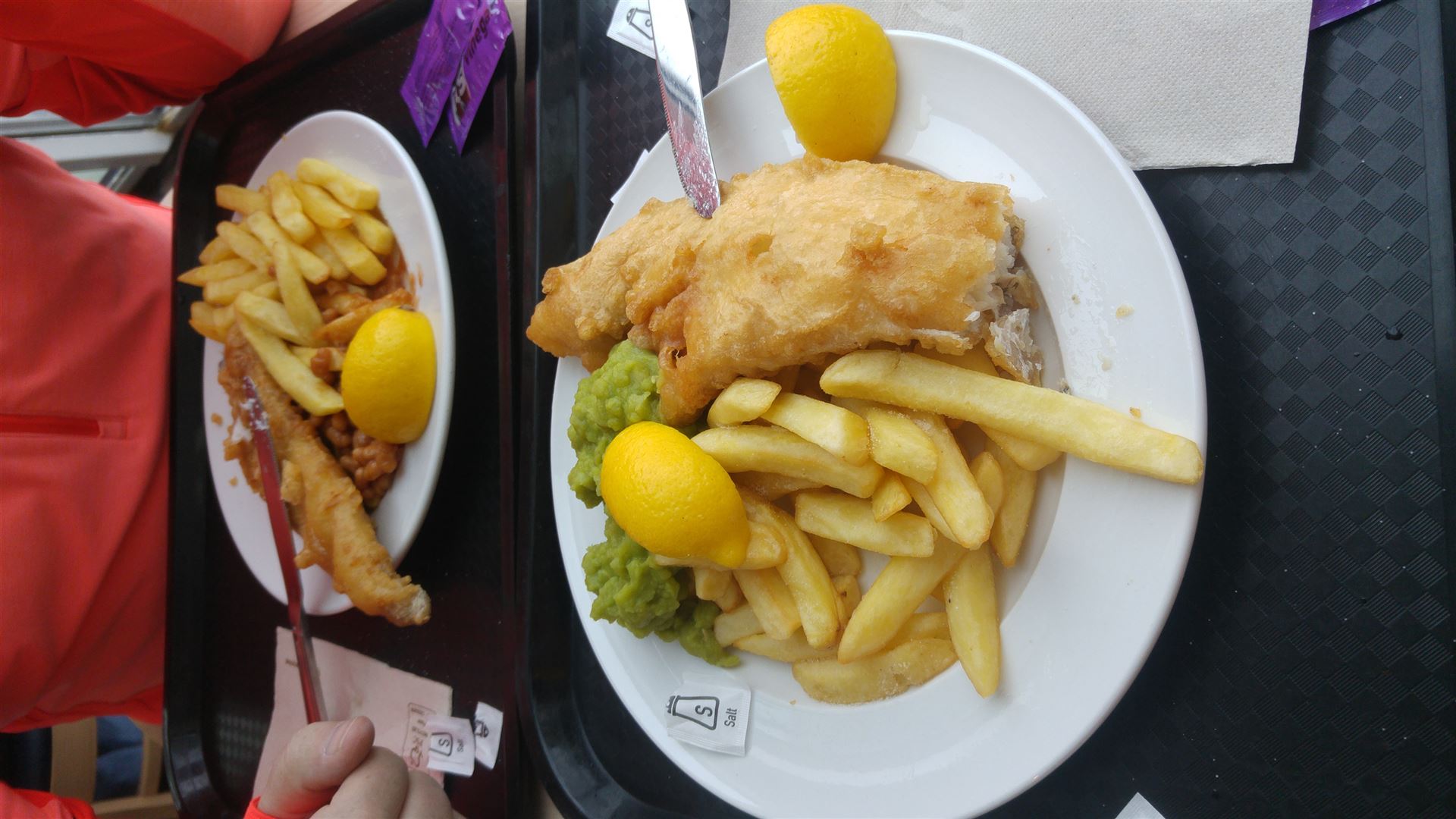 Stilecht gab es auf dem Schiff erstmal Fish & Chips. Wir hatten Hunger und wollten nicht mehr länger mit dem Essen warten.