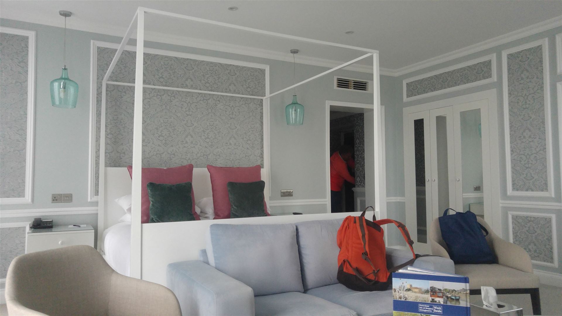 ...das Bad. Das Zimmer ist schlichtweg unglaublich. Einziger Wehrmutstropfen, der Zimmerpreis ist ohne Frühstück. Aber damit sind auch schon alle Negativpunkte aufgezählt. Hier lässt sich die erste Nacht wunderbar verbringen. Wir sind begeistert.