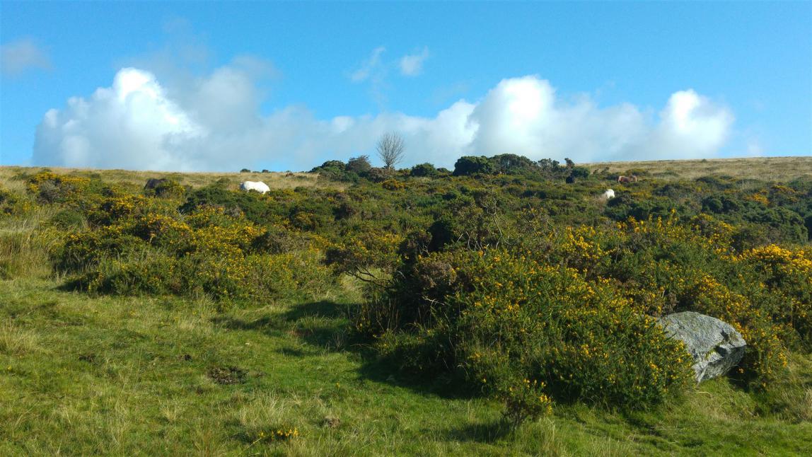 Aber weit gefehlt, das Dartmoor ist eine Hochebene ca. 950 km² groß und befindet sich im südlichen Devon. Bekannt ist Dartmoor wie erwähnt für diverse Horrorgeschichten, das Dartmoor Prison, ein Gefängnis mit unübersehbaren Granitmauern und generell für schlechtes Wetter. Durch seine Höhenlage von bis zu 621 m auf dem höchsten Berg des Dartmoors dem High Willhays, kann hier das Wetter quasi ungebremst vom Meer herziehen und den gefürchteten Nebel erzeugen. Im Nebel erscheinen dann Bäume, Büsche und Steinformationen als Horrorgestalten, wie schnell kann man sich im Nebel auch verlaufen. Aber heute wird uns das eher nicht passieren. Heute ist schönes Wetter angesagt, Sonne pur. Wobei pur bedeutet, die Sonne scheint mehr als sie nicht scheint. Natürlich gibt es genügend Wolken die auch Regen bringen können. Aber ich würde sagen für hiesige Verhältnisse durchaus ein wunderschöner Tag.