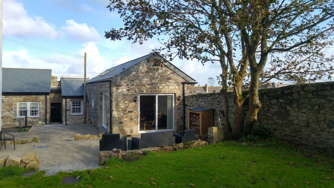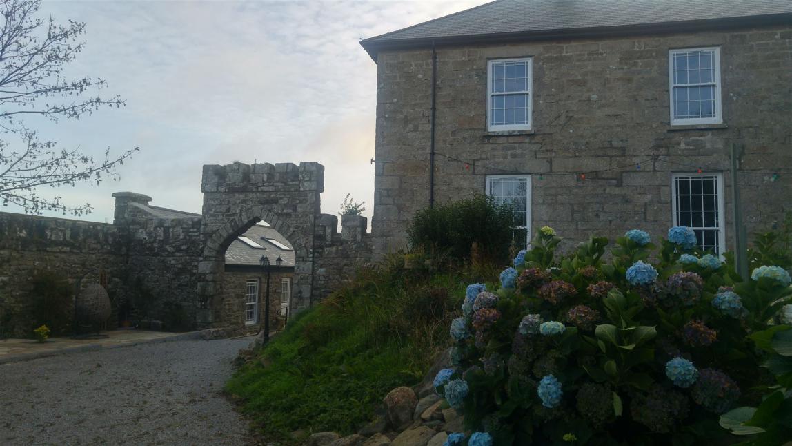 Wie erwähnt rechts steht das alte Pfarrhaus. Zum Appartement geht es durch den Torbogen hindurch nach hinten zu den ehemaligen Stables.