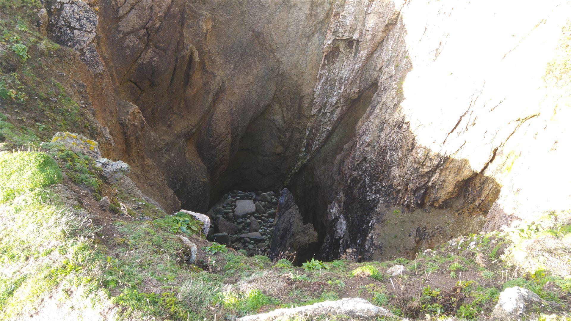 Hier tun sich auch Höllenschlunde auf, völlig ungesichert geht es in die Tiefe. Dazu weht der Wind wie das halt so ist an der Küste und durch diesen Schlund fängt das ganze zu Pfeifen an, als würde irgendwo das Nebelhorn geblasen. Ist aber tatsächlich dieses Loch, dass vor einem aus dem Nichts auftaucht.