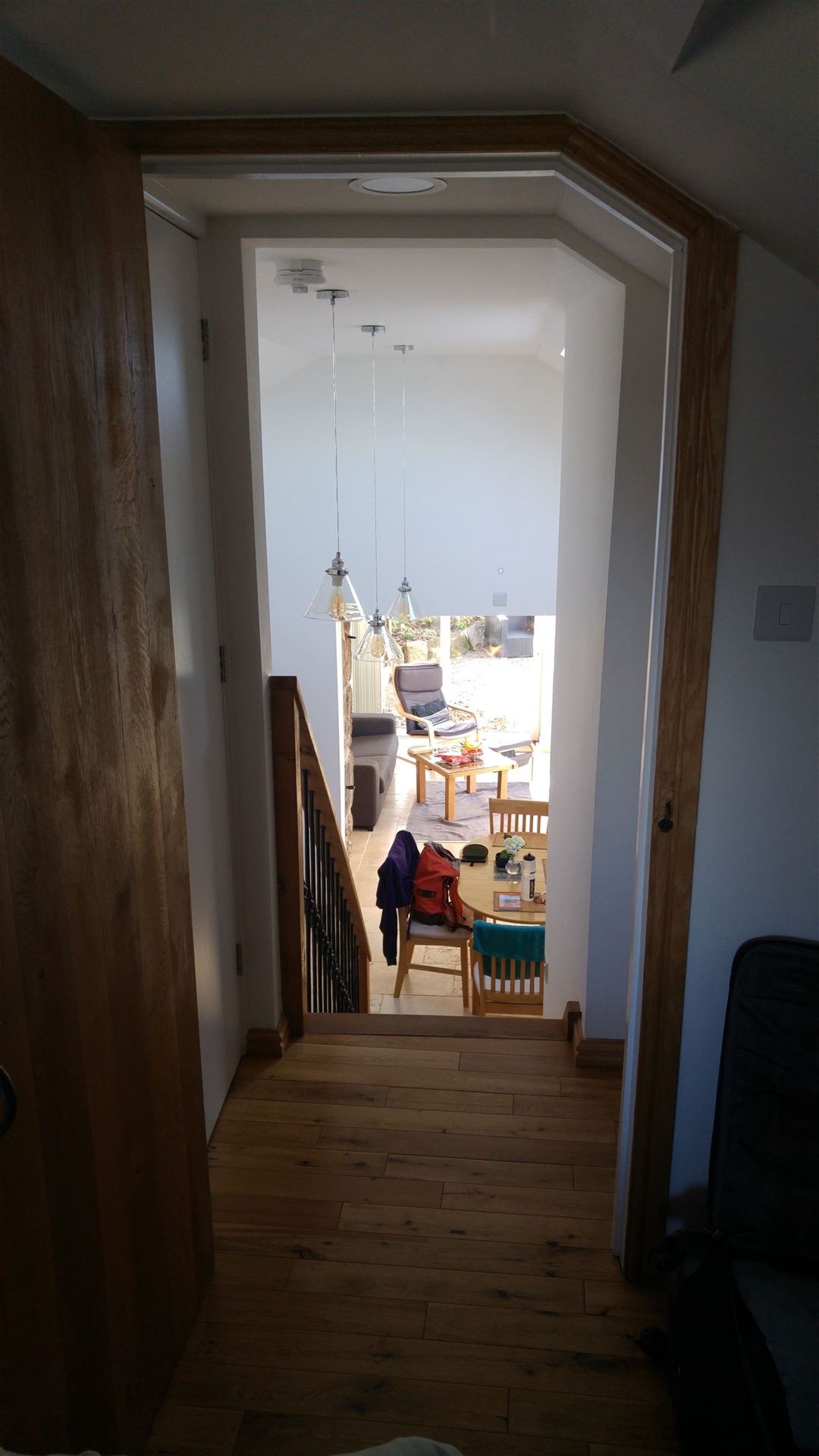Auf dem Bild seht ihr den Blick aus dem Schlafzimmer oben auf die Küche mit Essbereich. Das Haus ist wirklich einsame Spitze und zumindest zu dieser Jahreszeit auch noch richtig günstig. Es gab wirklich nur einen ganz entscheidenden Nachteil und es tut mir direkt leid dies so sagen zu müssen, aber wir sind halt nun mal mittlerweile in einem Alter wo man es dann doch auch spürt. Die Matratzen waren weich und durchgelegen. Wobei durchgelegen konnten sie ja nicht sein, weil die Wohnung sehr neu ist. Der Hausvermieter hat wirklich an nichts gespart, aber an den Matratzen da hat er dann vielleicht doch eine Nummer zu günstig gekauft.