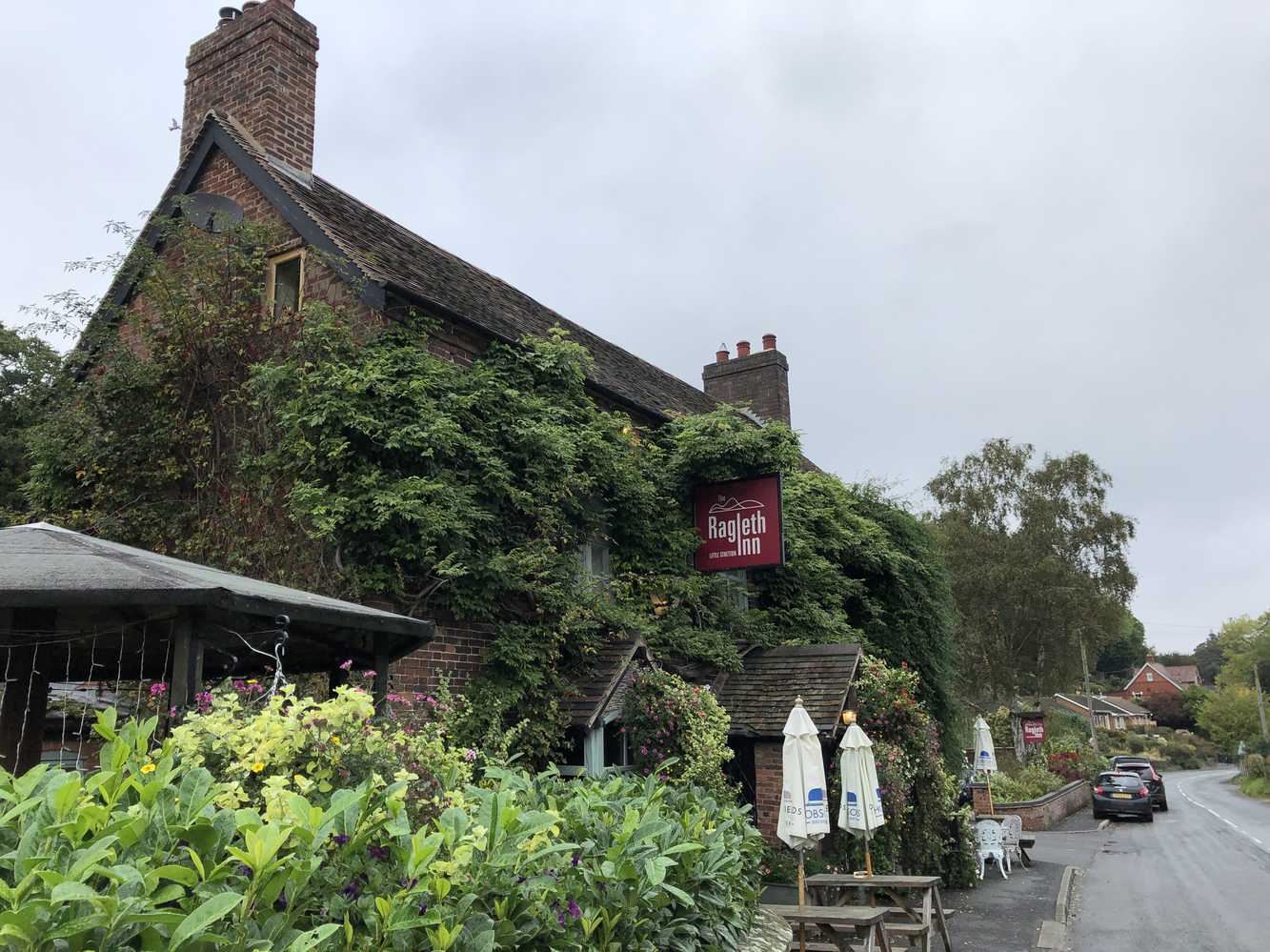 Unser Ziel heute ist zunächst Little Stretton. Habe ich gestern noch den Rothen Führer etwas kritisiert so hat er uns heute wieder zielsicher geführt. Wir wussten also schon vorher es würde in Little Stretton keine Parkmöglichkeiten geben. Geparkt wird am Wegesrand und da der kleine Ort tatsächlich eine Umfahrung besitzt, wagten wir es dann auch mitten im Ort vor dem Pub/Café namens "Ragleth Inn" unser Auto am Straßenrand zurückzulassen.