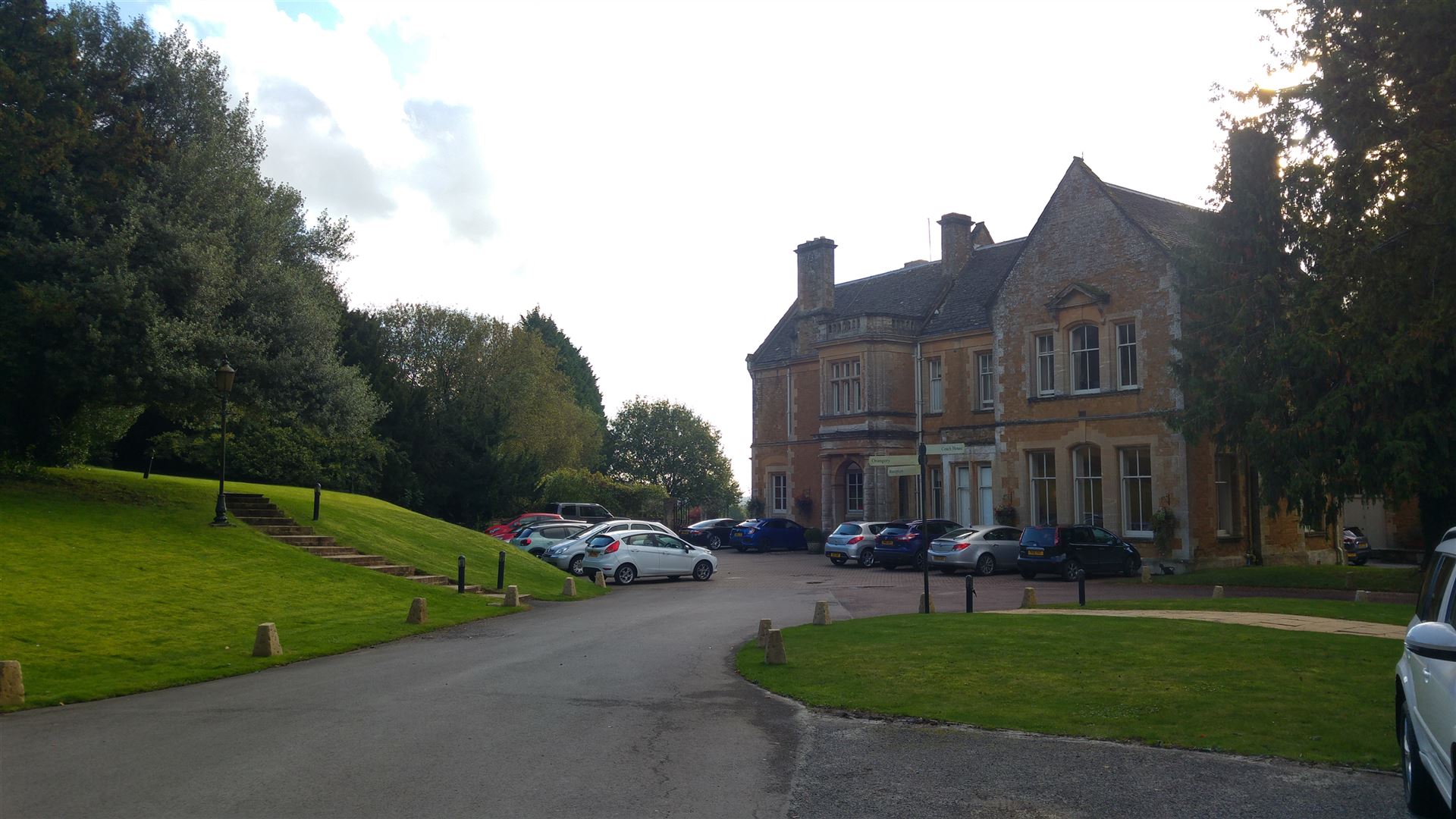 Wir werden uns diese Landschaft heute Abend und morgen den ganzen Tag über zu Gemüte führen. Wir übernachten im Wyck Hill House Hotel & Spa. Damit ihr einen kleinen Eindruck vom Gemäuer bekommt...