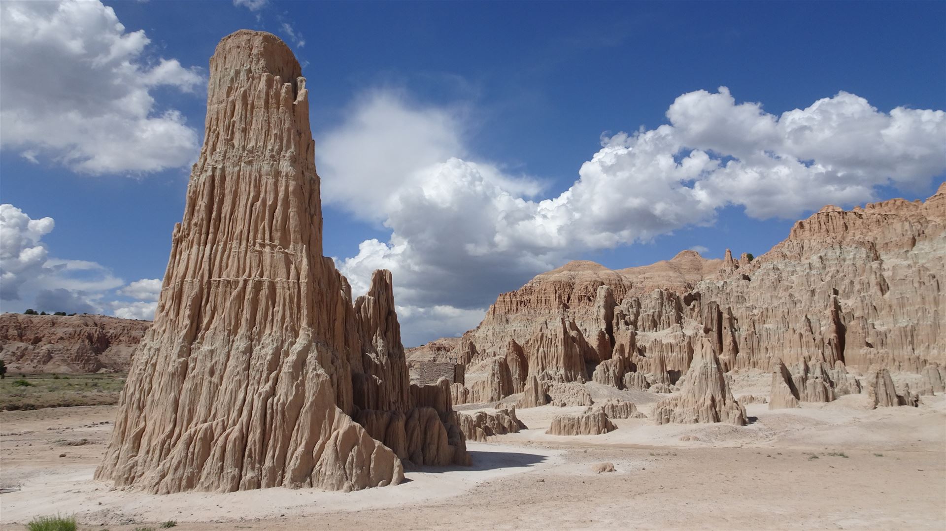 Knapp 100 Meilen weiter fuhren wir in den Cathedral Gorge S.P. ein. Wir bezahlten unsere 5 $ Eintritt am Visitor Center und schauten uns die ungewöhnlichen Formationen die der Park schützt einmal etwas genauer an.