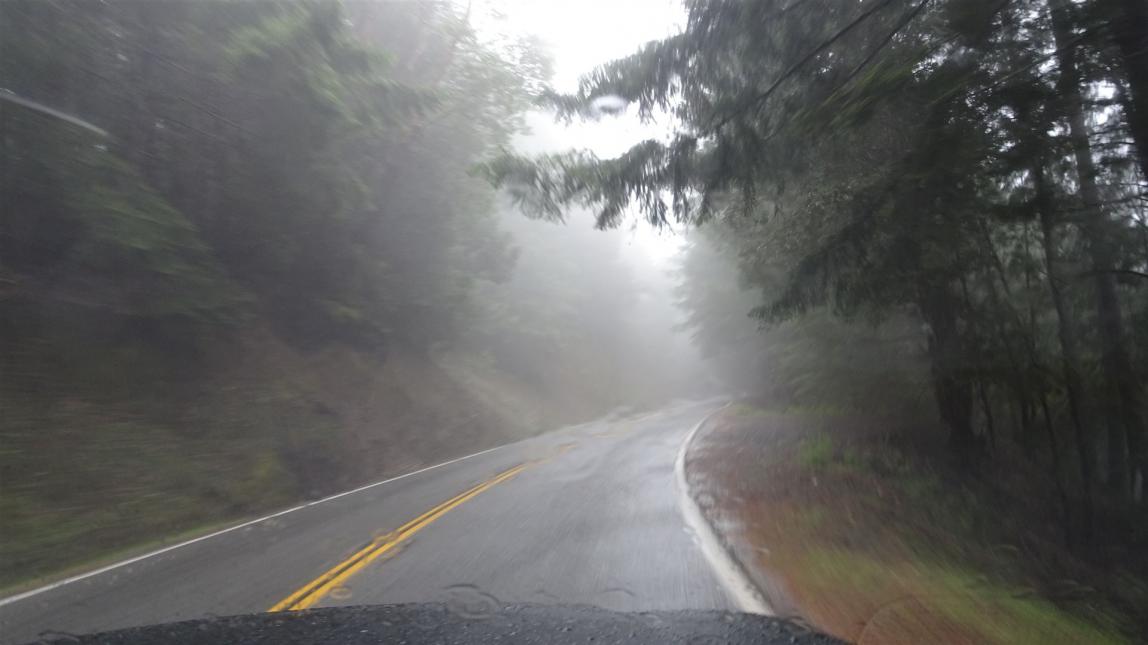 Was macht man an einem solchen Tag? Am Besten man fährt Auto. Da wird man noch am wenigstens nass. Wir fuhren weiter auf der 1 in Richtung Norden. Die Straße ist im weiteren Verlauf nach Fort Bragg mit der Bezeichnung kurvenreich nur unzureichend beschrieben. Schnallt euch an, wir fahren über Passstraßen die Mensch und Maschine einiges abverlangen.